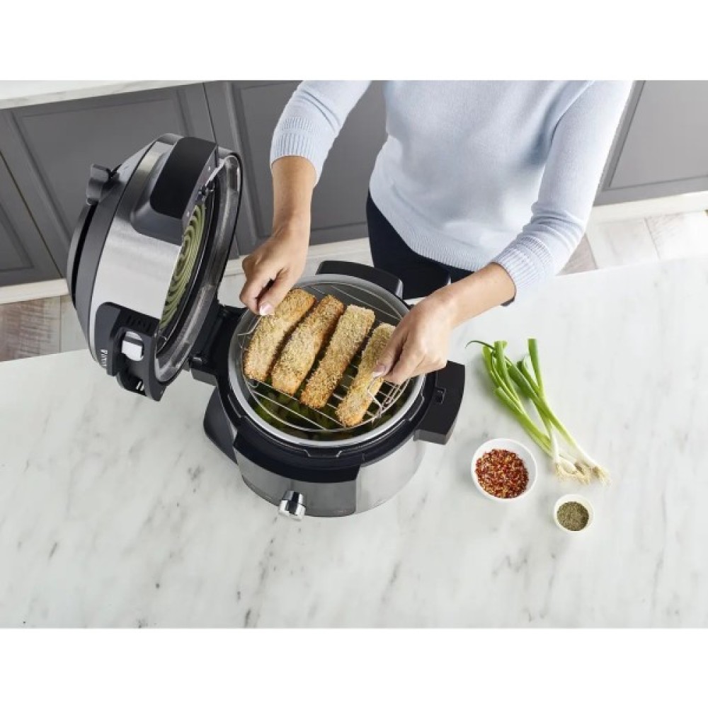 Є кілька способів обсмаження їжі. Найпопулярніший, звісно ж, обробка в олії, проте вона одразу ж всотується в продукт, роблячи його більш калорійним та впливаючи на смак. Хочете отримати більше? Купуйте мультиварку Ninja! Функція AirFry обсмажує ваші крильця та картоплю фрі нагрітим повітрям, тому ви можете використовувати на 75% менше олії або зовсім без неї. І таким чином істинний смак та аромат із хрусткою золотистою скоринкою будуть тішити ваші смакові рецептори з Ninja.