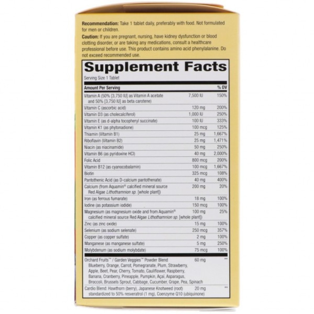 Комплекс Alive! Once Daily for Women від американського бренду Nature's Way — це кращий вітамінно-мінеральний комплекс для жінок. Головна перевага цього препарату в тому, що всі необхідні корисні речовини, вітаміни, мінерали і навіть ензими жінка може отримати завдяки одній таблетці на день. Цей комплекс підійде як для профілактичної підтримки організму, так і для поліпшення самопочуття під час менопаузи. Завдяки багатому складу, позитивно впливає на всі функції і системи організму.