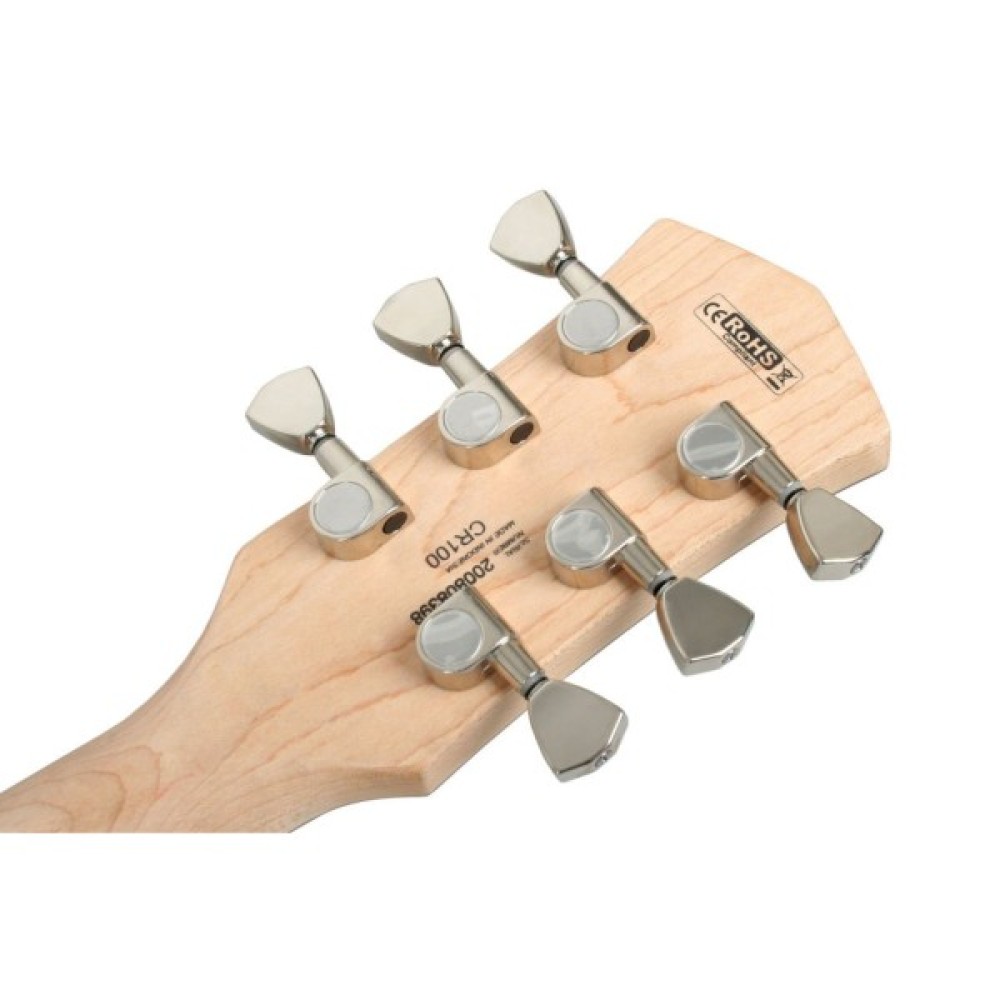 Серія електрогітар Classic Rock пропонує зовнішній вигляд, відчуття і характеристики вінтажних електрогітар Золотої ери, які високо цінуються багатьма гітаристами. Ретельно підібрані звукознімачі і автентичне, по-справжньому рокове звучання, роблять ці гітари чудовим вибором для будь-якого музиканта.Класичний дизайнМодель CR-100 має класичний, перевірений часом дизайн з одним вирізом і арочним топом, а також конструкцію з грифом на болтах.Звукознімачі PowersoundЗі звукознімачами Powersound PSLP-1F і PSLP-1R модель CR100 має щільне, класичне хамбакерне звучання при невеликій вартості.Бридж Tune-o-maticМодель CR-100 обладнана перевіреним десятиліттями бриджем типу Tune-o-matic і струнотримачем Stop Bar, які забезпечують поліпшений сустейн, чудову стабільність строю і точне інтонування кожної зіграної ноти.
