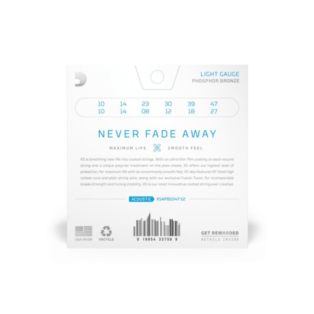 Тембр D'Addario живе в кожній струніXS вдихає нове життя в струни з покриттям. Завдяки ультратонкому плівковому покриттю кожної струни з обмоткою і унікальній полімерній обробці цільних сталевих струн XS пропонує найвищий рівень захисту для максимального терміну служби і надзвичайно гладкого відчуття. XS - сама інноваційна струна з коли-небудь створених.