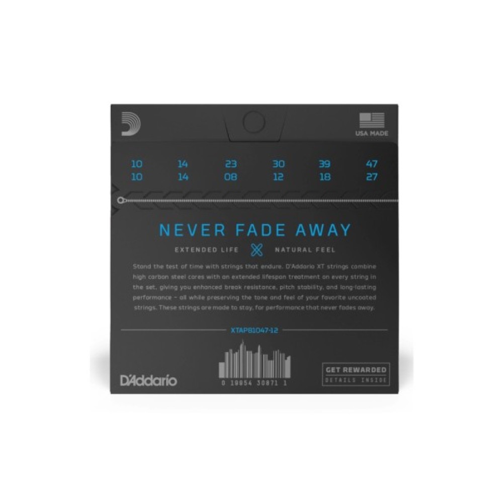 D'Addario XT - це перші струни, що поєднують сердечники з високовуглецевої сталі і навивку з найпопулярніших сплавів зі спеціальним захисним просоченням кожної струни в наборі! Ці струни неймовірно міцні, відрізняються поліпшеною стабільністю ладу і тривалим терміном служби - при цьому зберігаючи звучання і відчуття твоїх улюблених струн без покриття! D'Addario XT створені для максимальної довговічності і для незабутніх виступів!