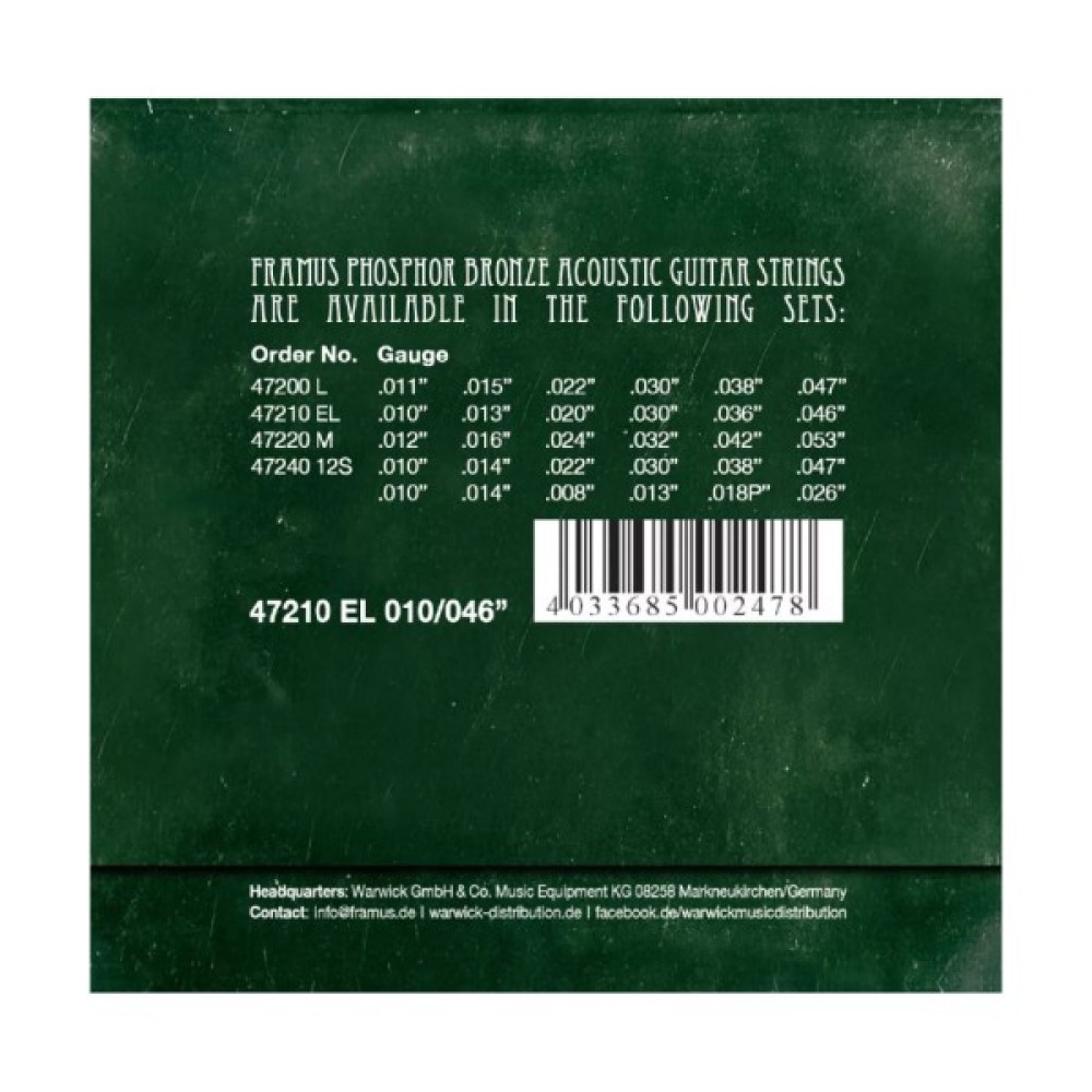 Струни, гітари, Framus, Phosphor, Bronze, Extra, Light, 1046, 47210, EL