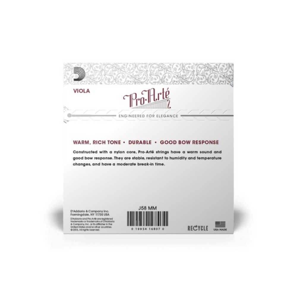 Завдяки використанню композитних матеріалів струни Pro-Arte менш чутливі до перепадів температури і вологості і мають швидку усадку. Виготовлені з меншим натягом, ці струни мають максимально багате звучання і чудову віддачу при грі смичком. Струни для смичкових інструментів D'Addario Pro-Arte ідеально підходять як для студентів, так і для музикантів, які шукають м'яке "темне" звучання.