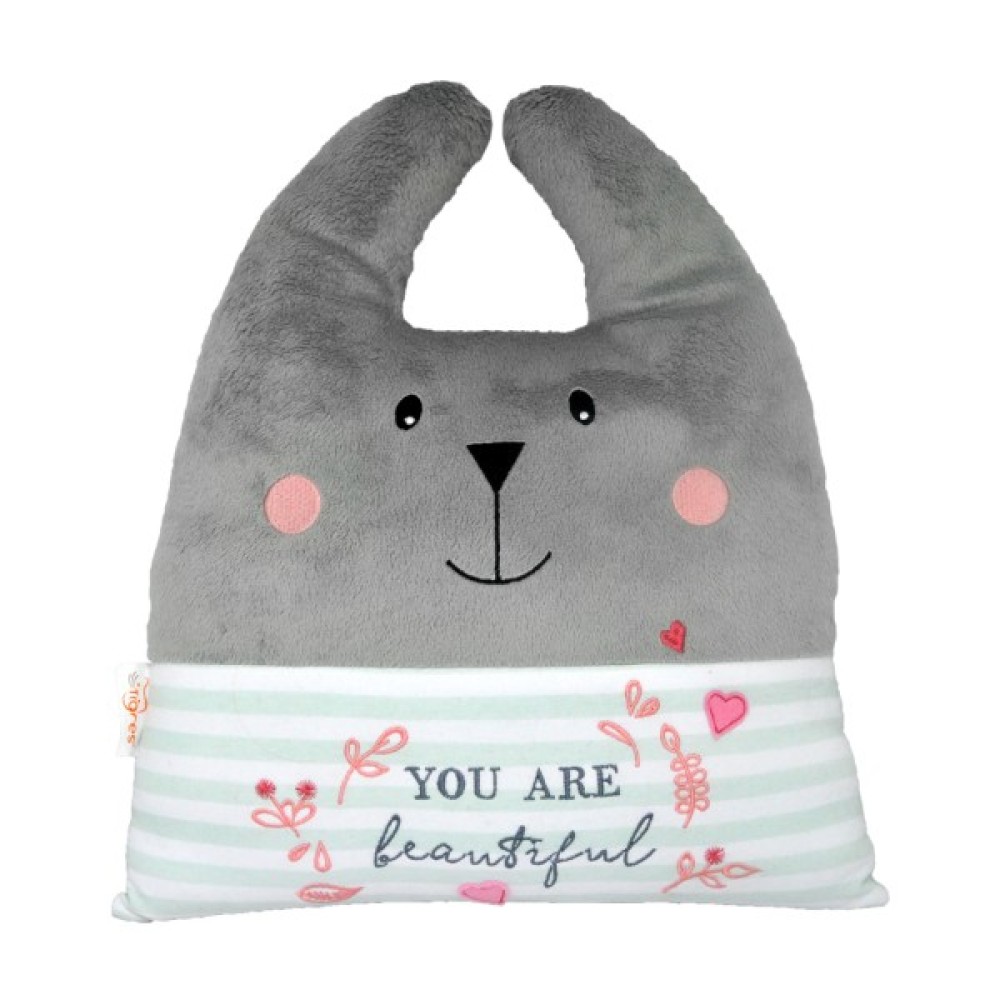 Оригінальна подушка — зайчик із компліментом "you are beautiful" і милою усмішкою подарує радісний настрій як дитині, так і дорослому. Подушка не тільки стильна, але й приємна на дотик і практична. Виріб можна використовувати як елемент декору, як аксесуар для відпочинку та просто для захопливої гри. Подушка виготовлена з екологічно чистих матеріалів, прекрасно зберігає форму після багаторазового прання.