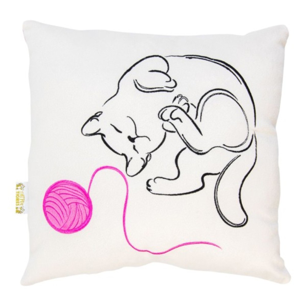 Подушка "Котик з клубком" від українського виробника Тигрес подарує позитивні емоції та буде хорошим подарунком для всіх шанувальників котів.
