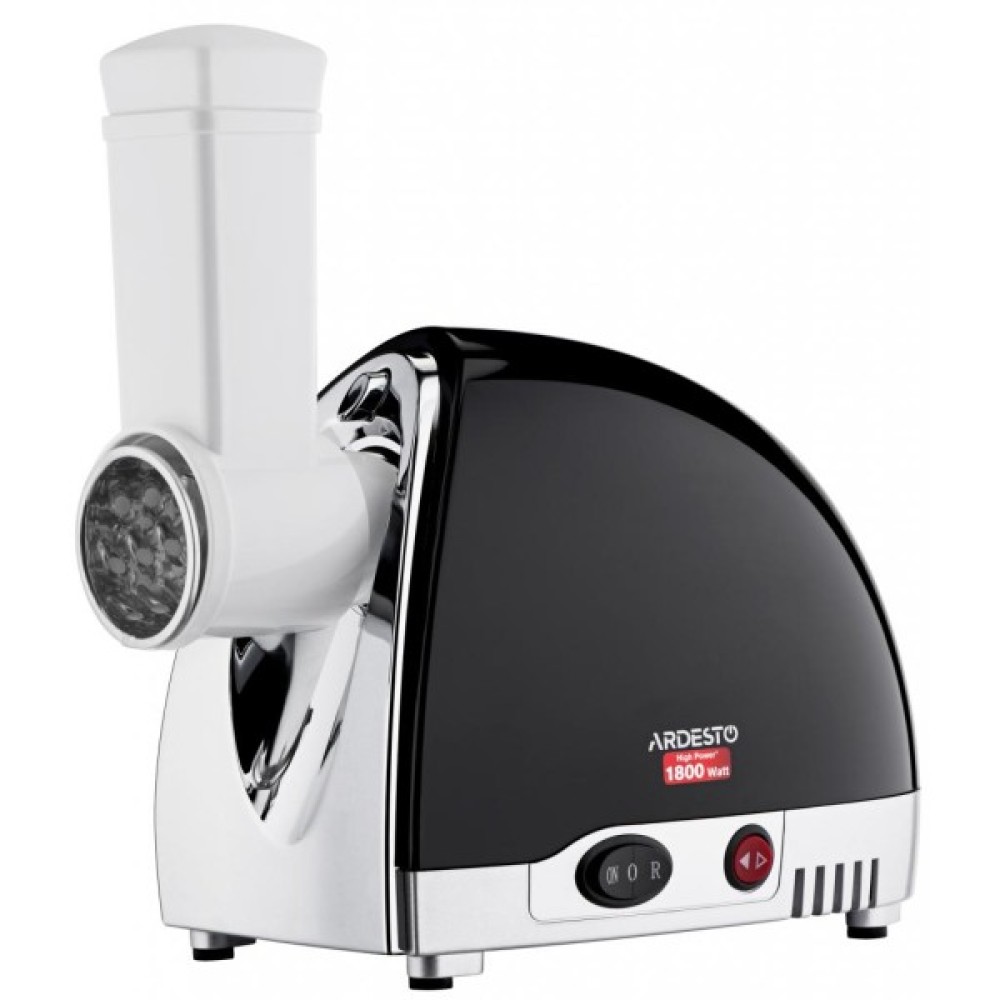 М'ясорубка ARDESTO MGL-2250R з потужністю 1800 Вт, змінними насадками для приготування фаршу, домашніх ковбасок і кебе, а також насадкою для тертя та шаткування.