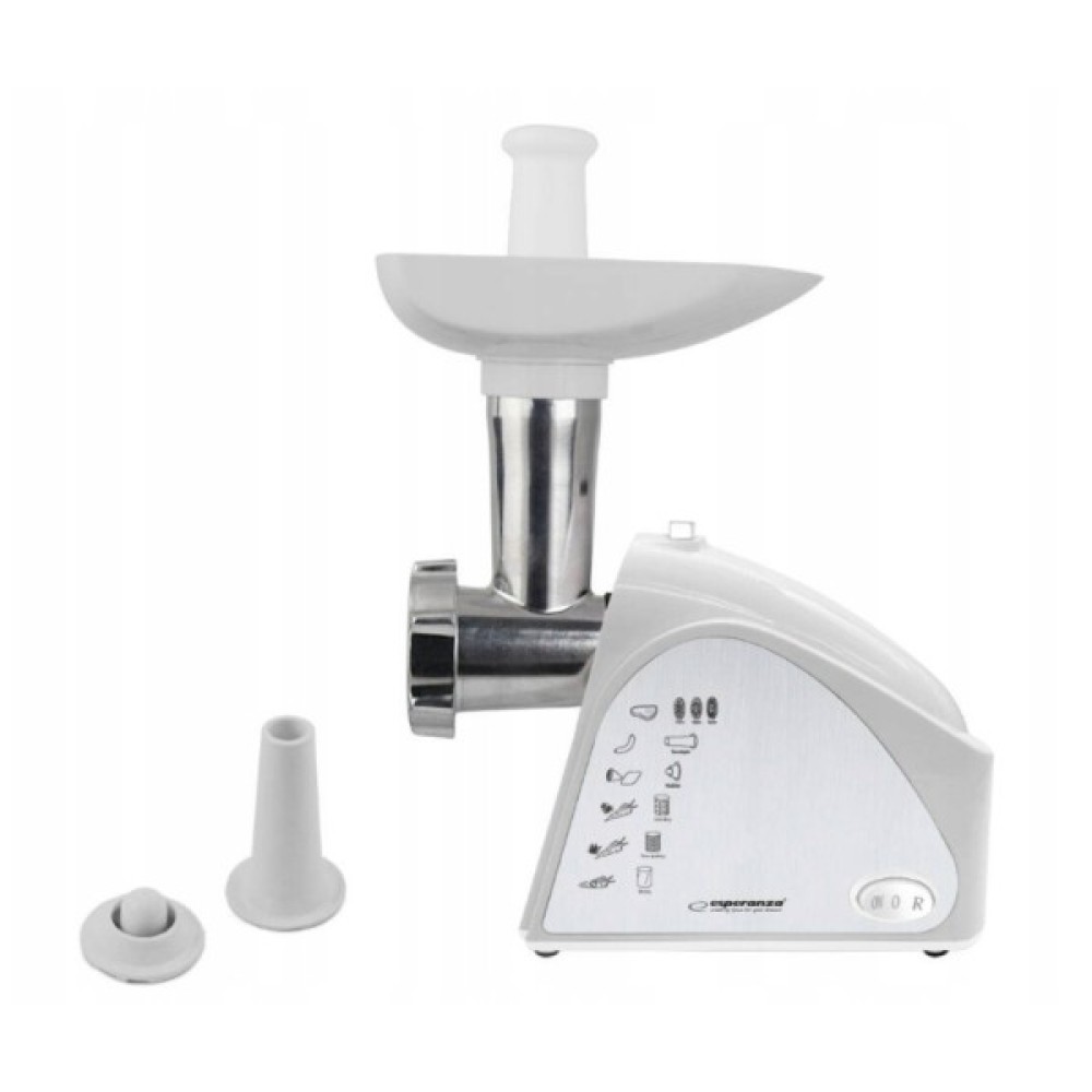 ESPERANZA EKM034 MEAT RISSOLE - сучасний і функціональний прилад, який стане в нагоді на кожній домашній кухні. Апарат у функції «подрібнювач» дуже легко подрібнить не тільки м'ясо, але й інші продукти харчування, а додаткові насадки дозволять приготувати ковбаски або «кеббе». Функція «Шредер» ідеально підходить для подрібнення фруктів, овочів, твердого сиру, шоколаду, горіхів. Протиковзкі гумові ніжки гарантують стабільну та безпечну роботу пристрою.