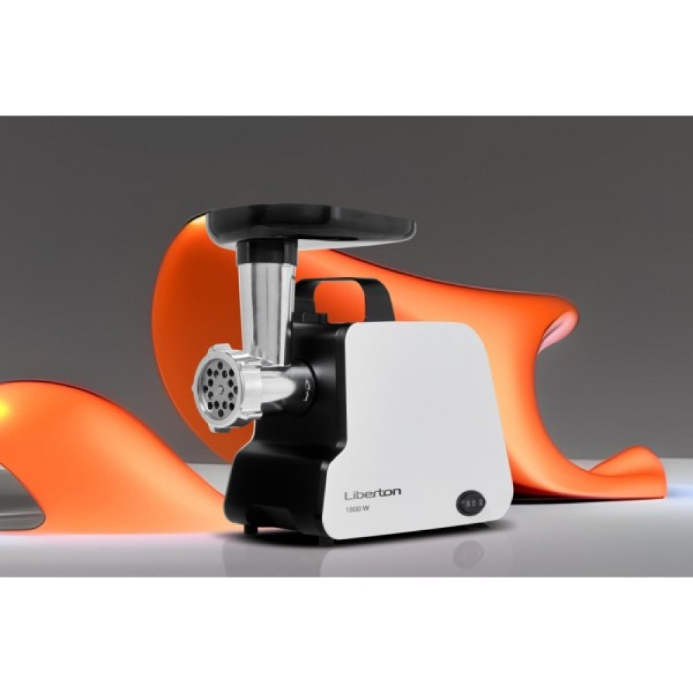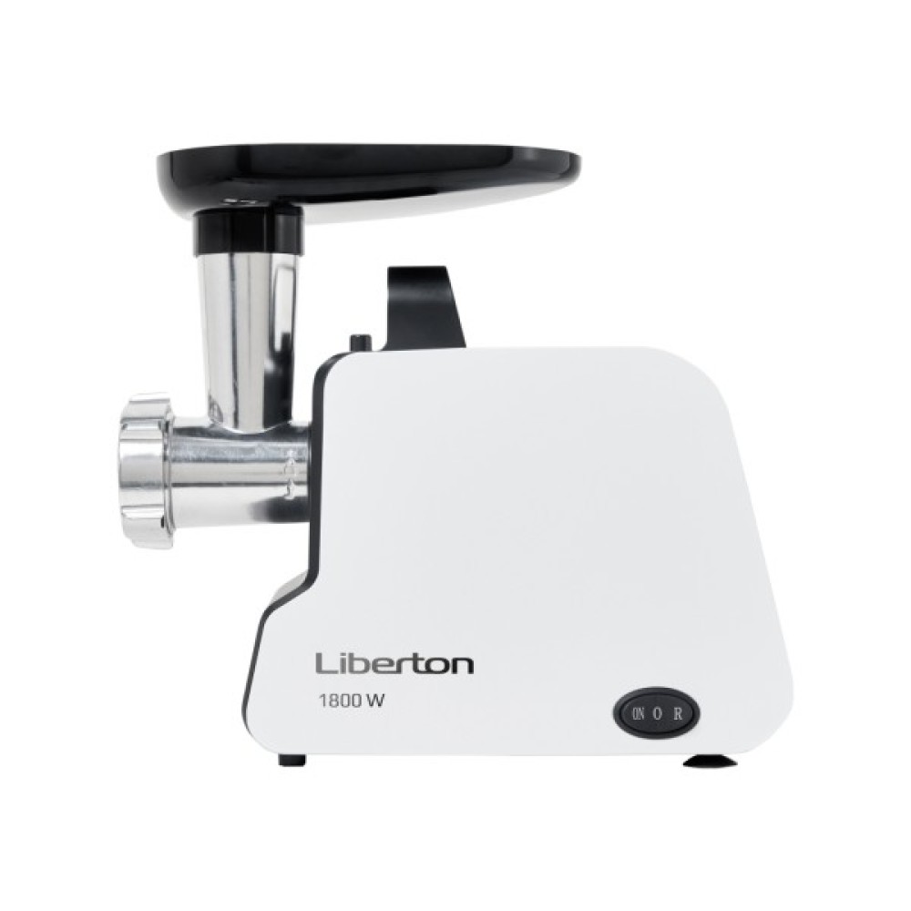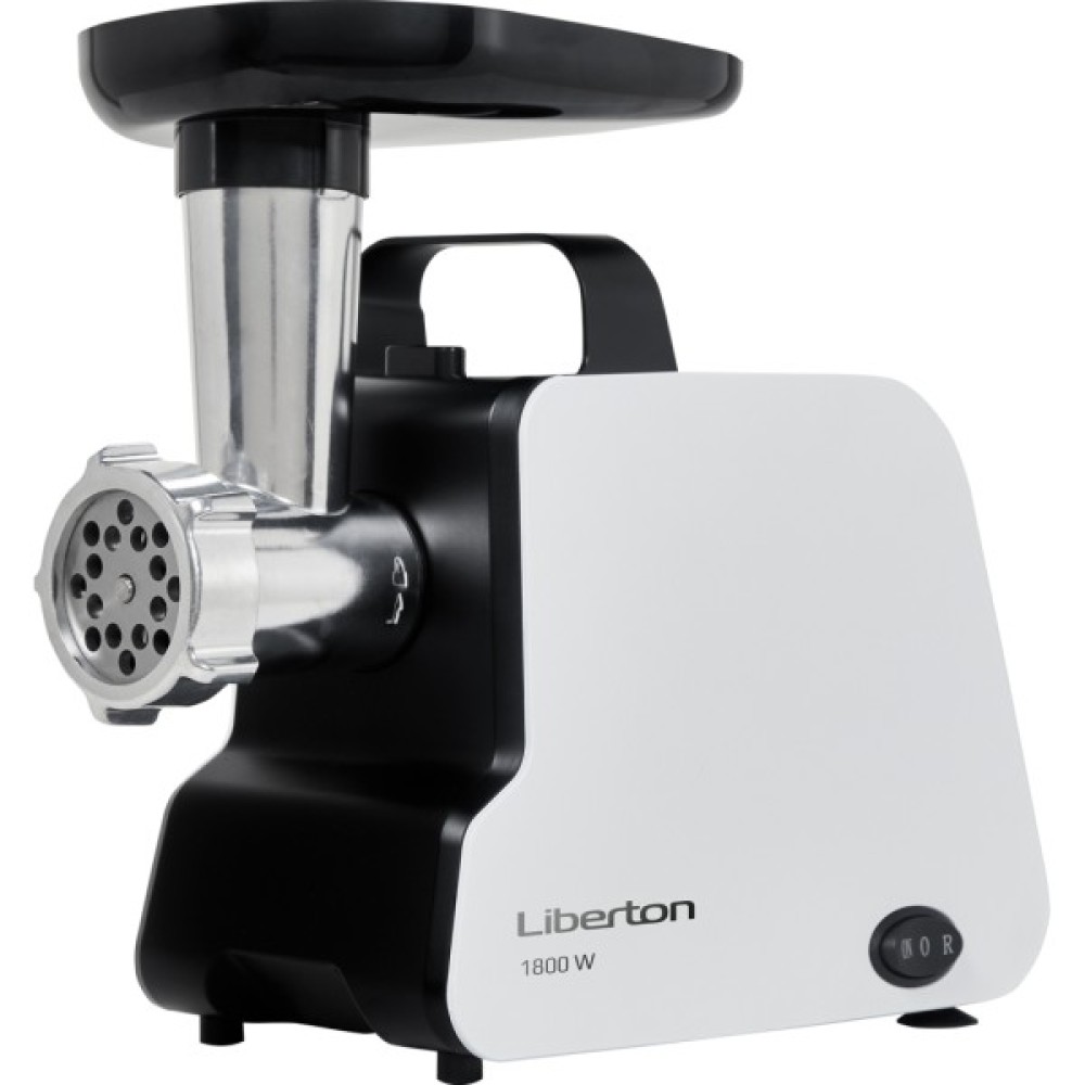 Потужність: 1800 Вт (при заклинюванні); Продуктивність: 1,2 кг/хв.; Функції: реверс, захист від перегріву; Аксесуари: 3 диска для помелу (3 мм/5 мм/7 мм), насадка для ковбас, насадка для кебе, штовхач, пластиковий лоток; Матеріал шнека: нержавіюча сталь; Матеріал корпусу: пластик; Розмір виробу: 28,8х30,5х14,2 см; Колір: білий+чорний.