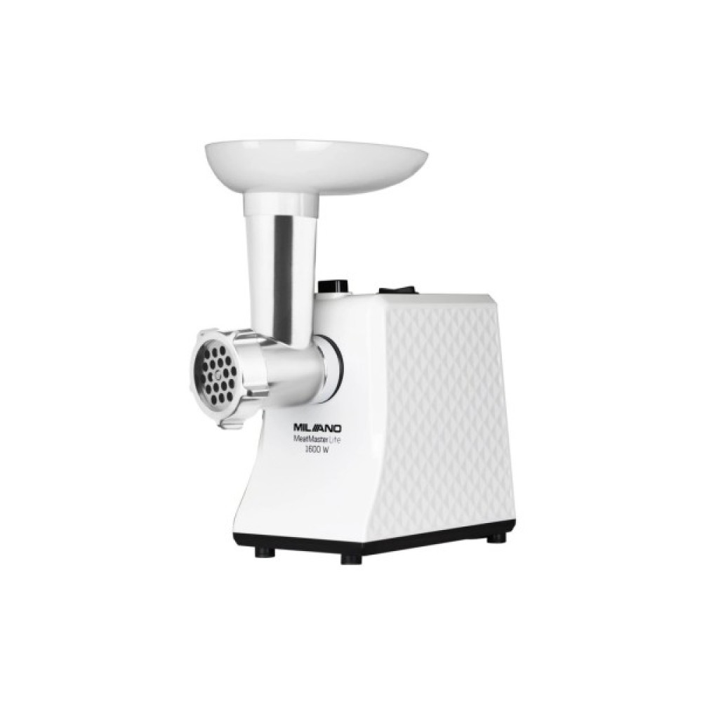 М'ясорубка Milano MG-4016WT MeatMaster Lite – надійний вибір для дому, що поєднує в собі продуктивність і зручність. Корпус із пластику забезпечує легкість конструкції та довговічність. Завдяки потужності у 1 600 Вт, пристрій здатен ефективно подрібнювати до 1,6 кг м'яса за хвилину. Для вашої зручності передбачено пластиковий лоток і нековзаючі ніжки, що гарантують стабільність під час роботи.