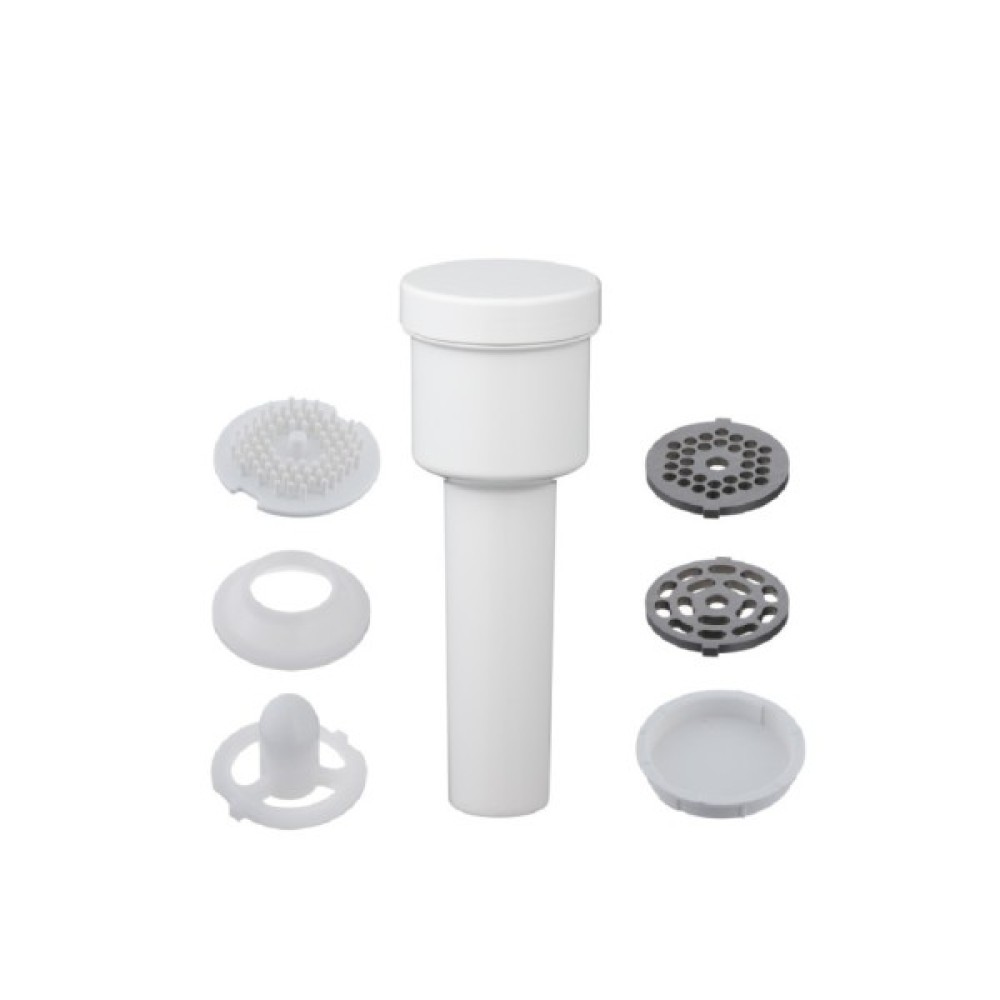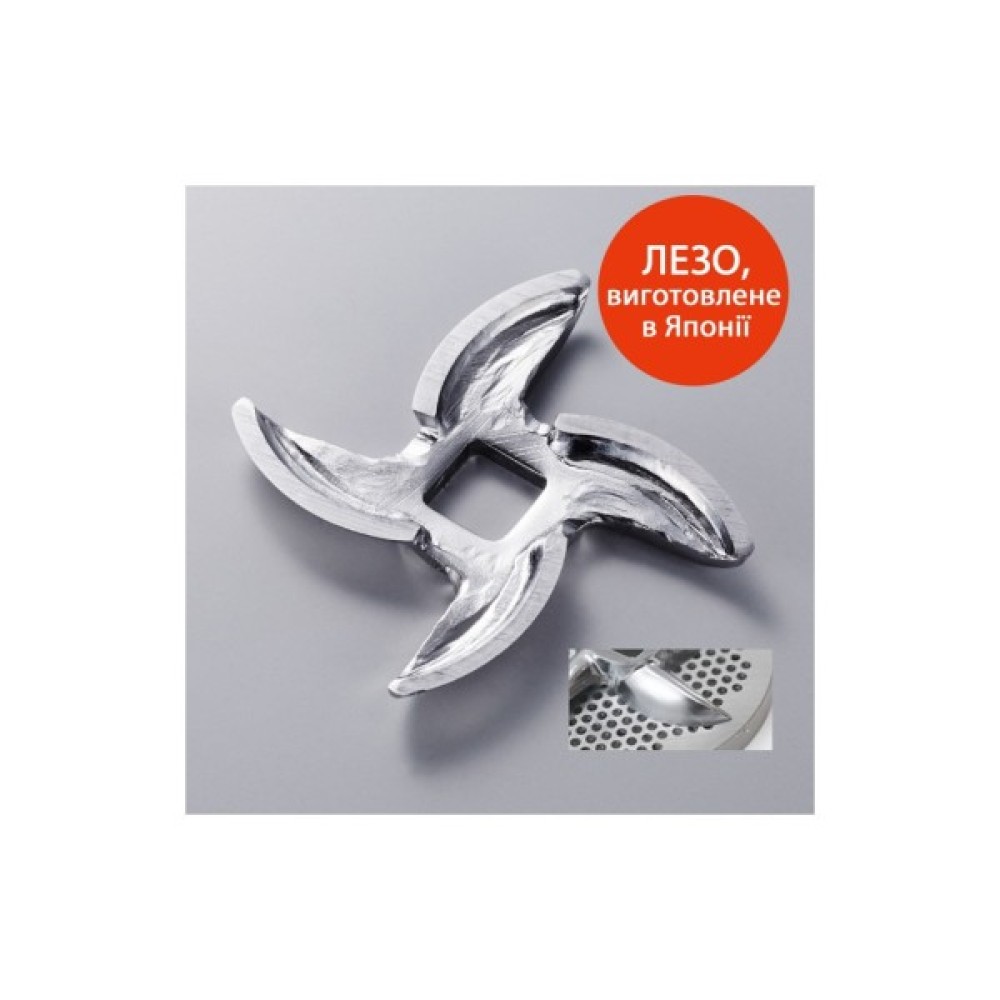 2. Ножі і диски: В комплекті з м'ясорубкою йдуть різні ножі та диски для подрібнення на різні розміри, що дозволяє вам вибирати оптимальний розмір подрібнення залежно від вашої потреби (грубе або дрібне подрібнення).