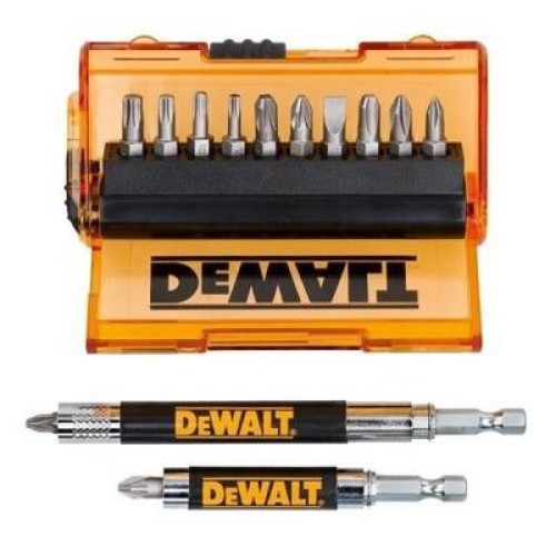 Набір DEWALT DT71502 включає 14 різних насадок для шуруповерта. Для ручної роботи передбачені 2 магнітних держателя різних розмірів. Біти знаходяться в пластмасовому контейнері для зручного зберігання.