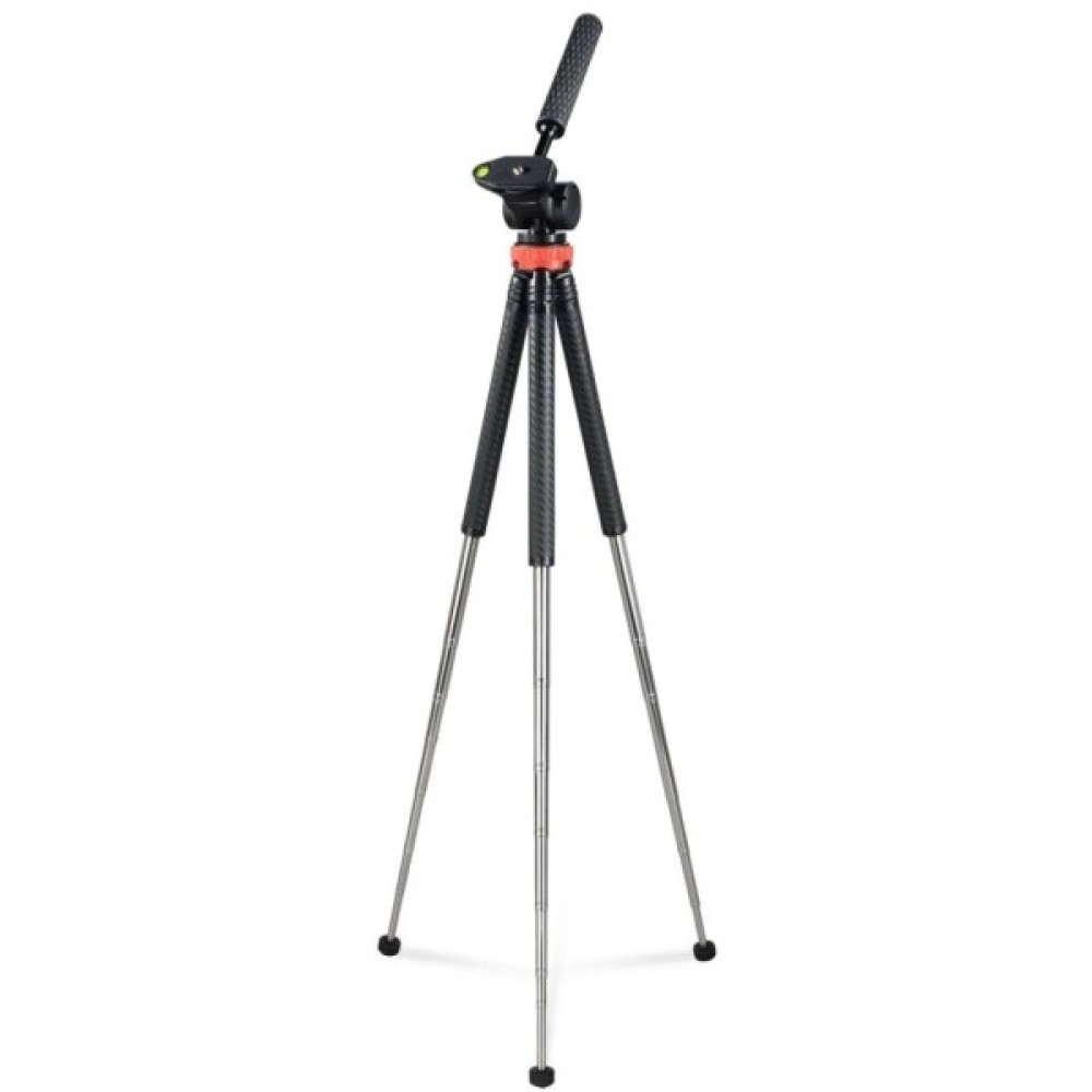 Ніжка штатива покрита високоякісною міцною гумою зі стільниковим малюнком для чудового зчеплення з поверхнею. Обертове кільце на верхній частині штатива дозволяє змінювати ширину закріплених ніжок, що забезпечить надійну фіксацію штатива та пристрою. Універсальне кріплення підходить для смартфонів шириною від 4,8 до 9,5 см (у горизонтальному форматі) завдяки подвійному висувному пружинному тримачу. Тримач має захисний матеріал, який захищає корпус смартфона від подряпин. Тримач для смартфона можна зняти та використовувати з іншими кріпленнями чи гаджетами. Тримач має поворотну пластину з різьбленням для оптимального підключення інших адаптерів. Кріплення для камер з різьбою ¼.