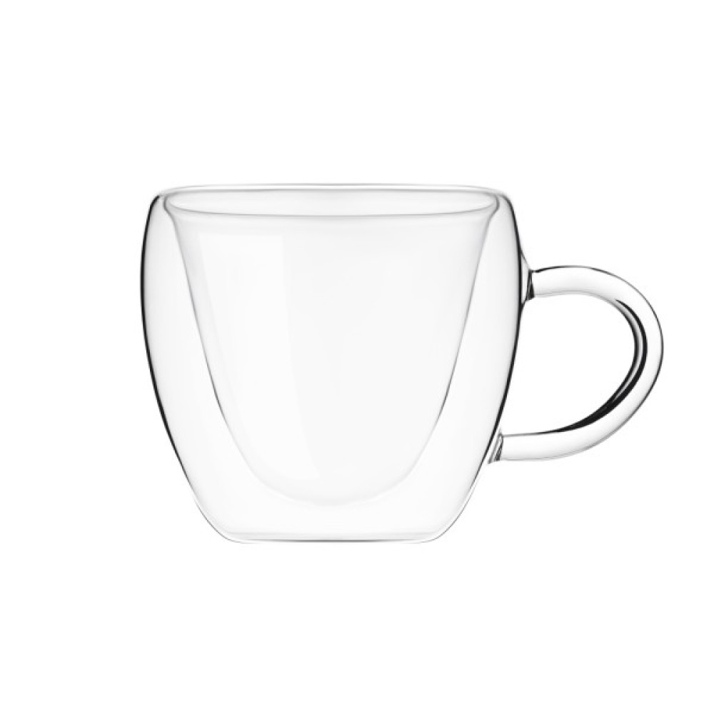 Набір чашок з подвійними стінками. До набору входять дві чашки об’ємом по 250 мл. Чашки виготовлено з термостійкого боросилікатного скла.
