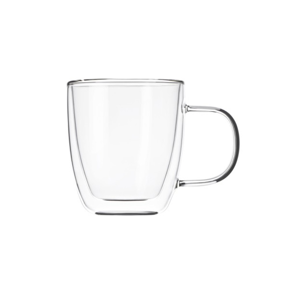 Набір чашок з подвійними стінками. До набору входять дві чашки об’ємом по 310 мл. Чашки виготовлено з термостійкого боросилікатного скла.