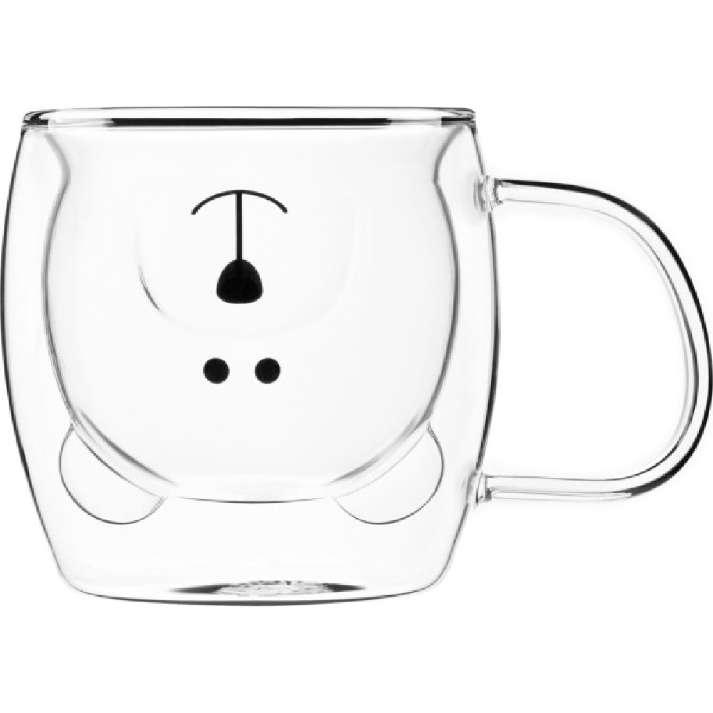 Набір чашок з подвійними стінками та ручками. До набору входять дві чашки об’ємом по 250 мл. Чашки виготовлено з термостійкого боросилікатного скла.