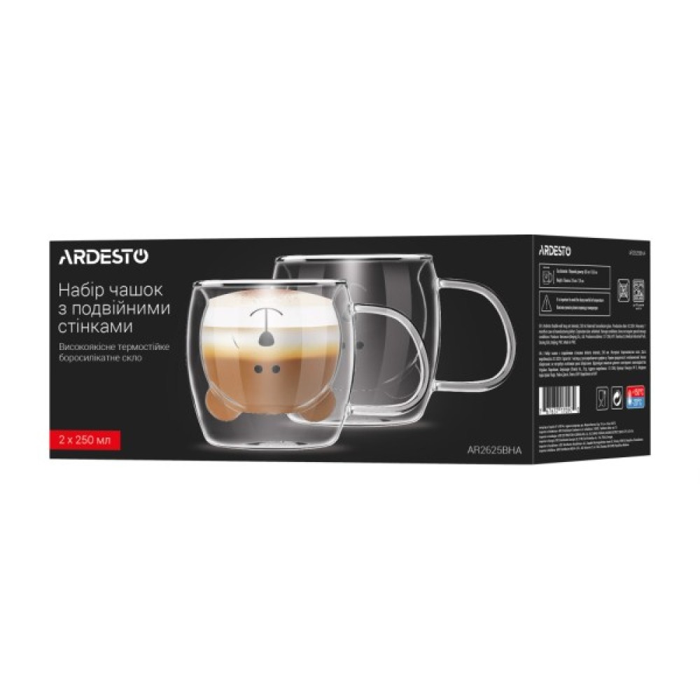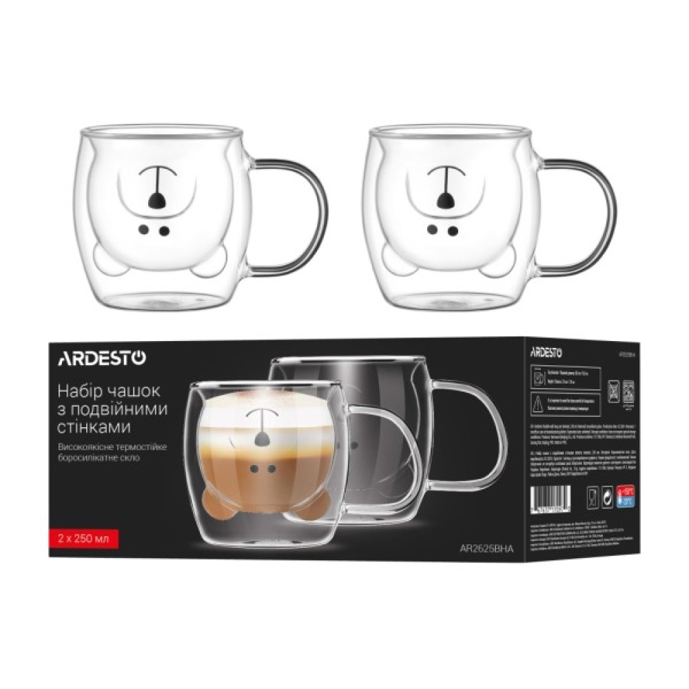 Набір, чашок, Ardesto, Animals, BHA, 250, мл, 2, шт, прозорий, AR2625BHA
