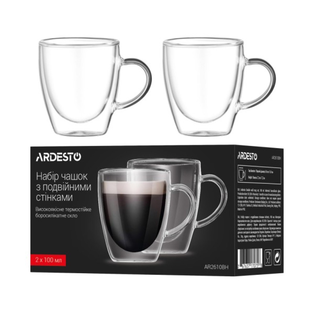 Набір, чашок, Ardesto, BH, 100, мл, 2, шт, прозорий, AR2610BH