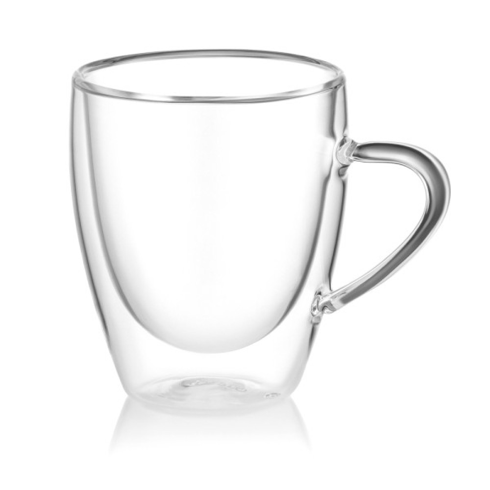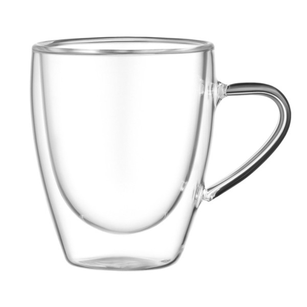 Чашки з подвійними стінками – це насолода для поціновувачів естетики та практичності. Вони надзвичайно міцні та легкі, витримують температуру від -20 до +150 °C. Їх можна використовувати як піали або креманки для морозива. Завдяки особливій конструкції здається, що напої та десерти в них парять у повітрі. Вироби виготовлено з боросилікатного скла, стійкі до подряпин і не взаємодіють із напоями. Кожну чашку створюють вручну, тому вони є унікальними та мають характерний отвір на дні через спеціальний спосіб видування скла. Повітряний прошарок між двома стінками зберігає напої теплими, не нагріваючи зовнішньої поверхні. Чашки можна мити в посудомийній машині до 50 разів і використовувати в мікрохвильовці за температури до 100 °C. У комплектованні – дві чашки.