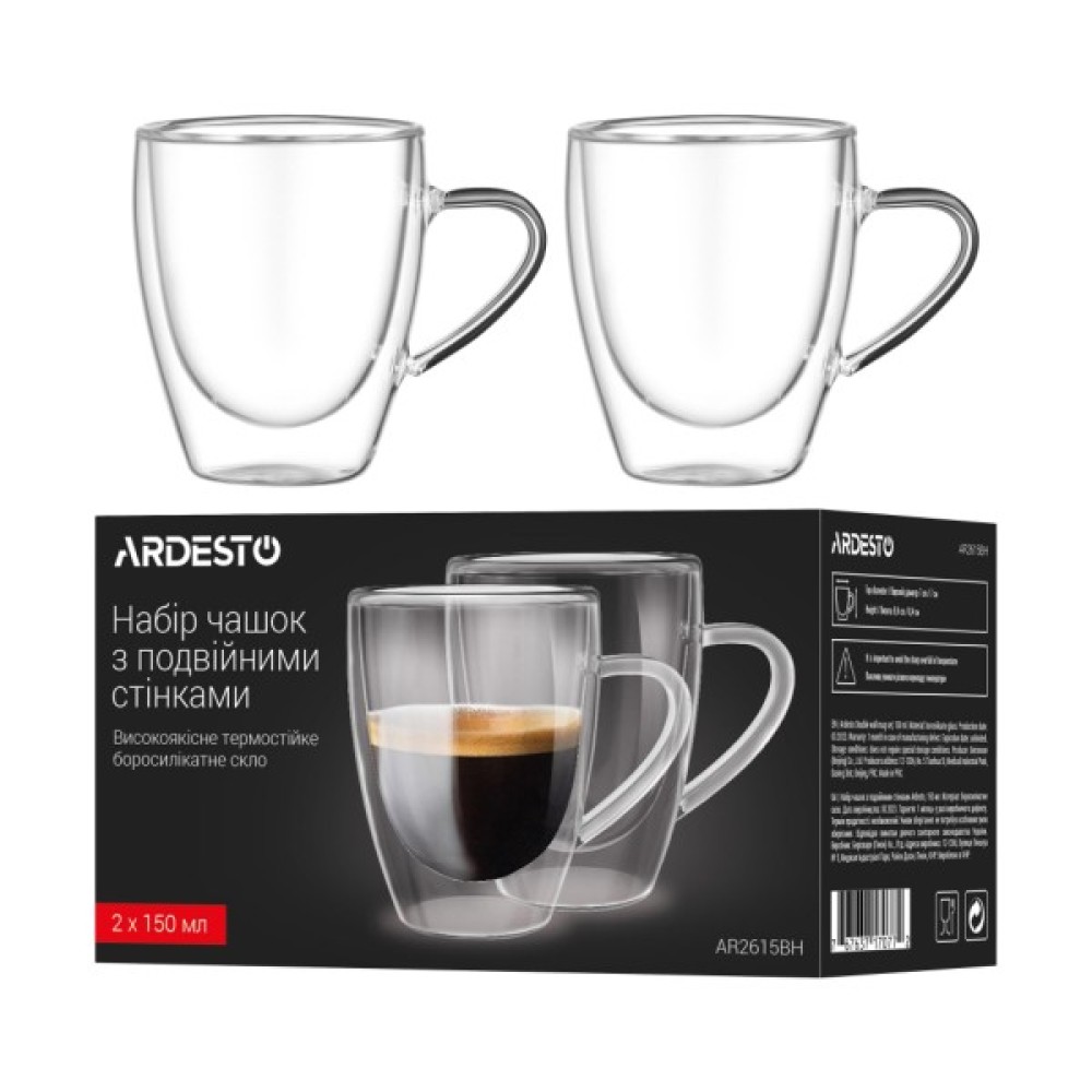 Набір, чашок, Ardesto, BH, 150, мл, 2, шт, прозорий, AR2615BH