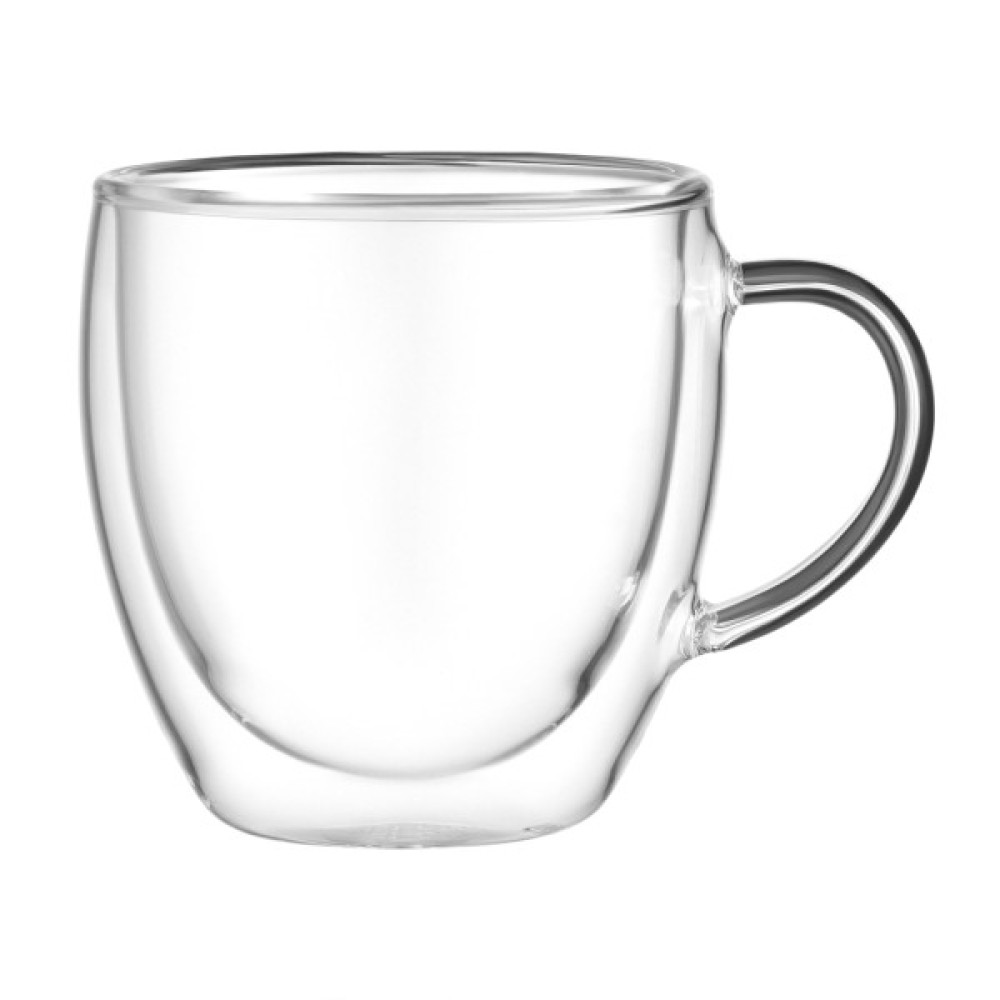 Чашки з подвійними стінками – це насолода для поціновувачів естетики та практичності. Вони надзвичайно міцні та легкі, витримують температуру від -20 до +150 °C. Їх можна використовувати як піали або креманки для морозива. Завдяки особливій конструкції здається, що напої та десерти в них парять у повітрі. Вироби виготовлено з боросилікатного скла, стійкі до подряпин і не взаємодіють із напоями. Кожну чашку створюють вручну, тому вони є унікальними та мають характерний отвір на дні через спеціальний спосіб видування скла. Повітряний прошарок між двома стінками зберігає напої теплими, не нагріваючи зовнішньої поверхні. Чашки можна мити в посудомийній машині до 50 разів і використовувати в мікрохвильовці за температури до 100 °C. У комплектованні – дві чашки.