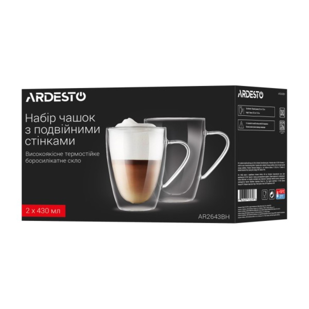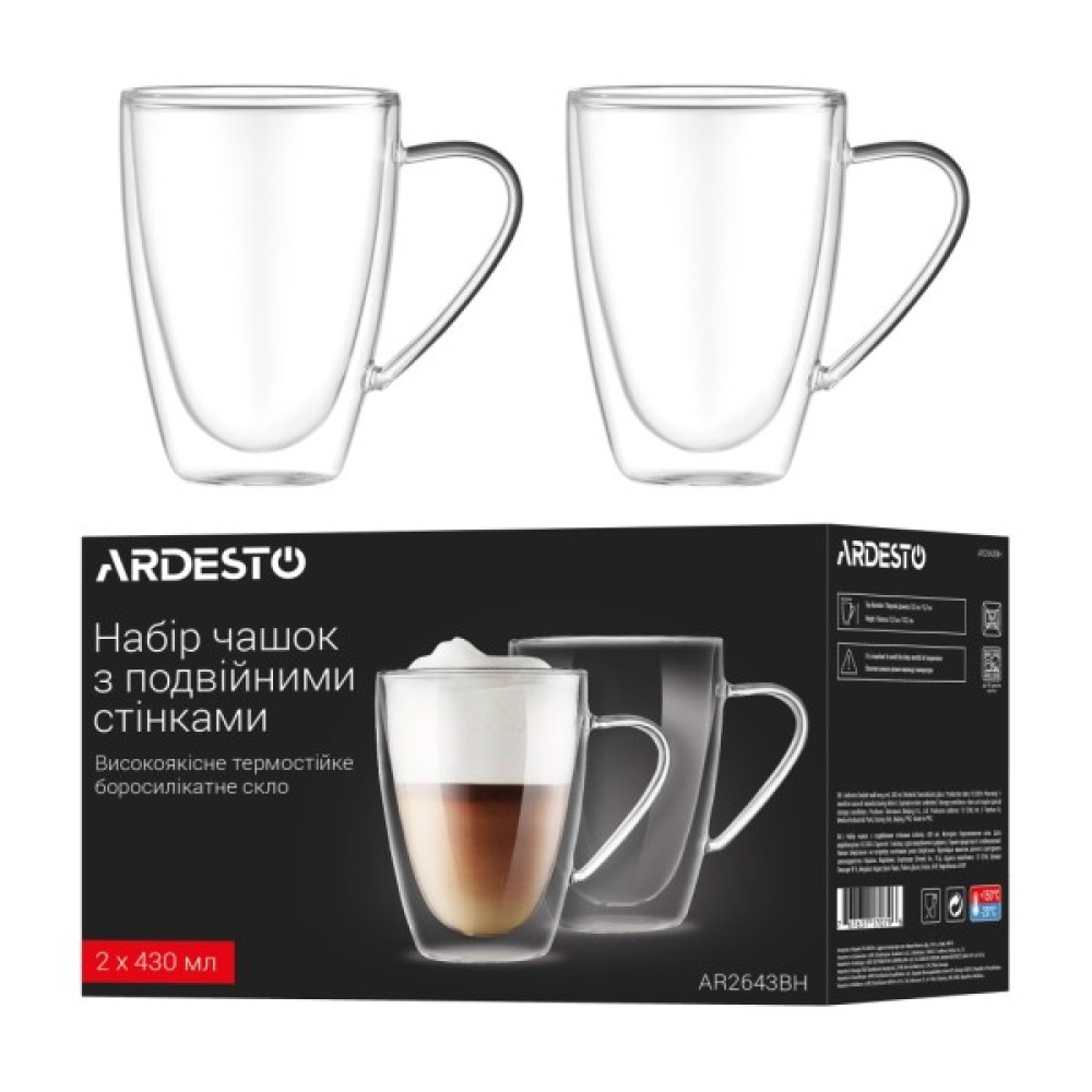 Набір, чашок, Ardesto, BH, 430, мл, 2, шт, прозорий, AR2643BH