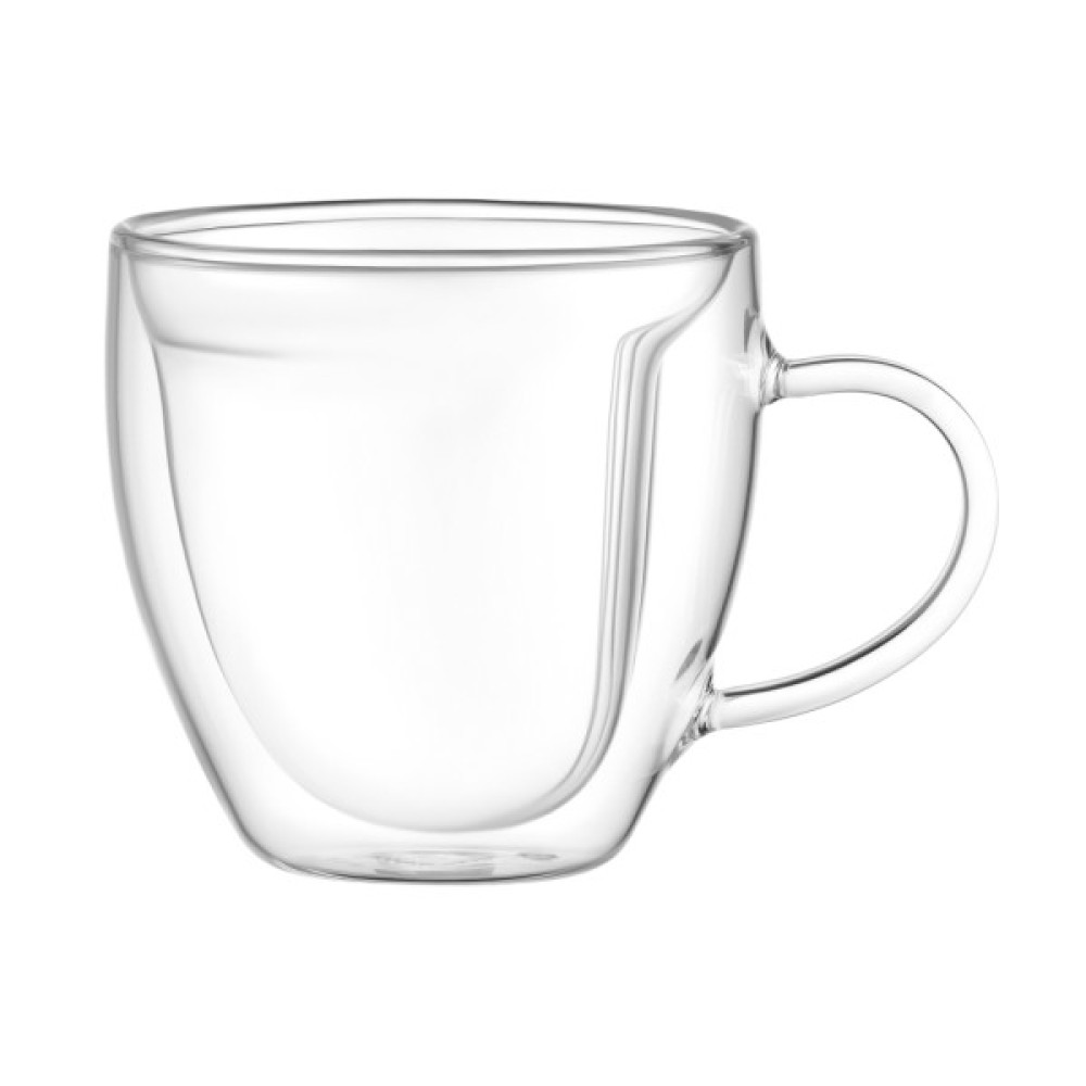 Чашки з подвійними стінками – це насолода для поціновувачів естетики та практичності. Вони надзвичайно міцні та легкі, витримують температуру від -20 до +150 °C. Їх можна використовувати як піали або креманки для морозива. Завдяки особливій конструкції здається, що напої та десерти в них парять у повітрі. Вироби виготовлено з боросилікатного скла, стійкі до подряпин і не взаємодіють із напоями. Кожну чашку створюють вручну, тому вони є унікальними та мають характерний отвір на дні через спеціальний спосіб видування скла. Повітряний прошарок між двома стінками зберігає напої теплими, не нагріваючи зовнішньої поверхні. Чашки можна мити в посудомийній машині до 50 разів і використовувати в мікрохвильовці за температури до 100 °C. У комплектованні – дві чашки.