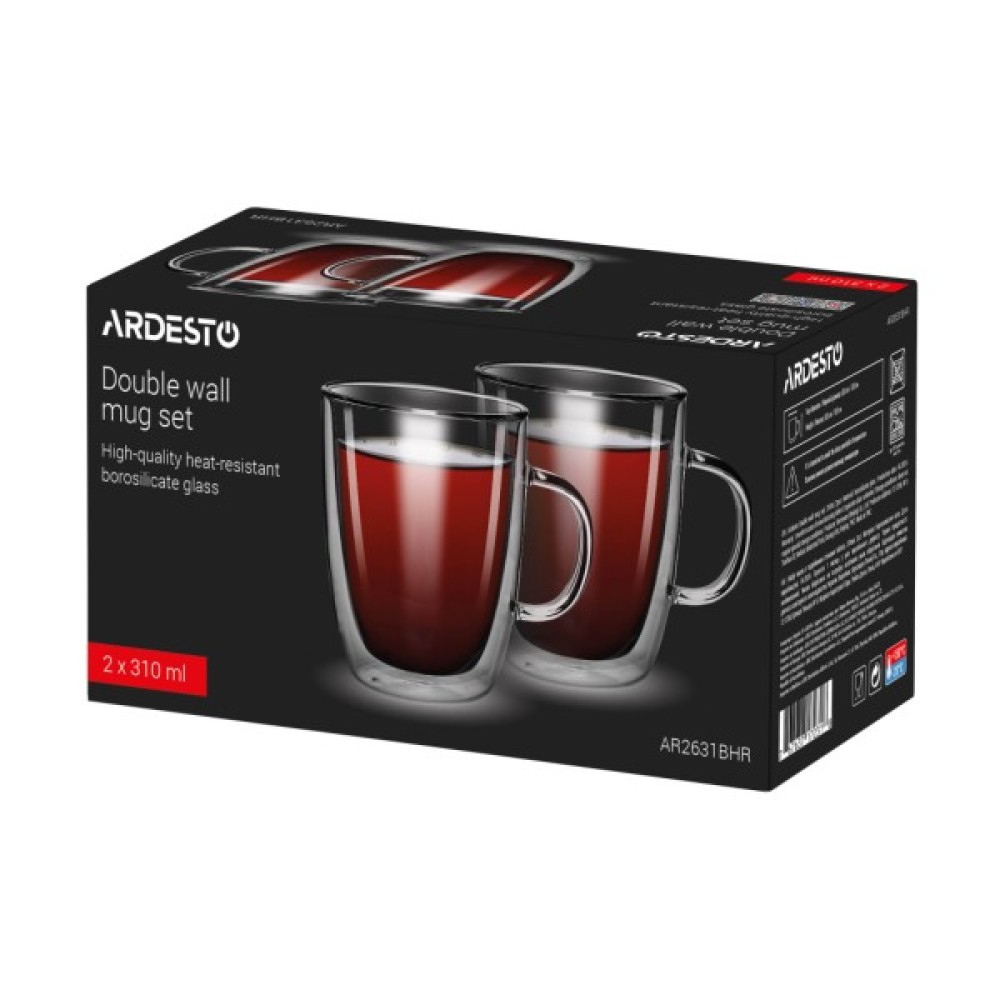 Набір, чашок, Ardesto, BHR, 310, мл, 2, шт, прозорий, AR2631BHR