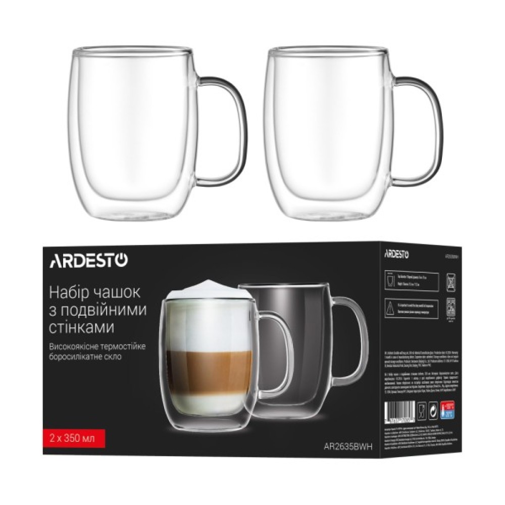 Набір, чашок, Ardesto, BWH, 350, мл, 2, шт, прозорий, AR2635BWH