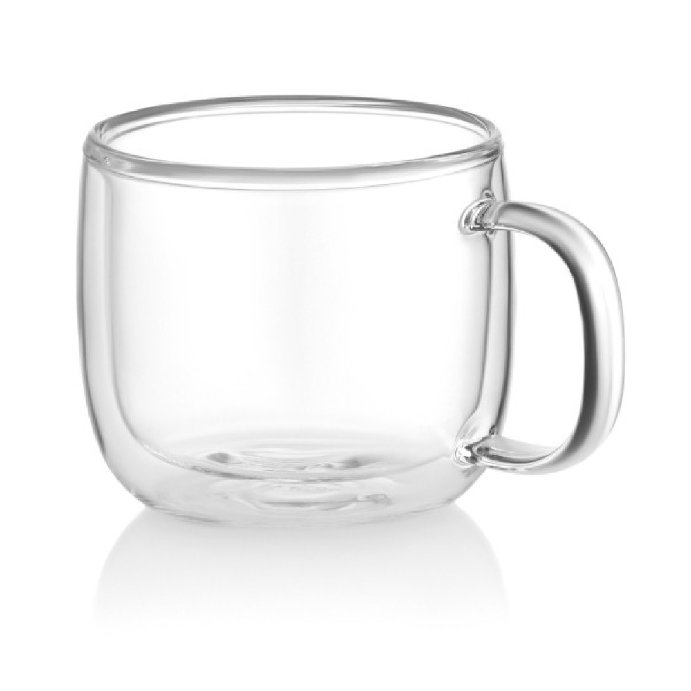 Чашки з подвійними стінками – це насолода для поціновувачів естетики та практичності. Вони надзвичайно міцні та легкі, витримують температуру від -20 до +150 °C. Їх можна використовувати як піали або креманки для морозива. Завдяки особливій конструкції здається, що напої та десерти в них парять у повітрі. Вироби виготовлено з боросилікатного скла, стійкі до подряпин і не взаємодіють із напоями. Кожну чашку створюють вручну, тому вони є унікальними та мають характерний отвір на дні через спеціальний спосіб видування скла. Повітряний прошарок між двома стінками зберігає напої теплими, не нагріваючи зовнішньої поверхні. Чашки можна мити в посудомийній машині до 50 разів і використовувати в мікрохвильовці за температури до 100 °C. У комплектованні – дві чашки.