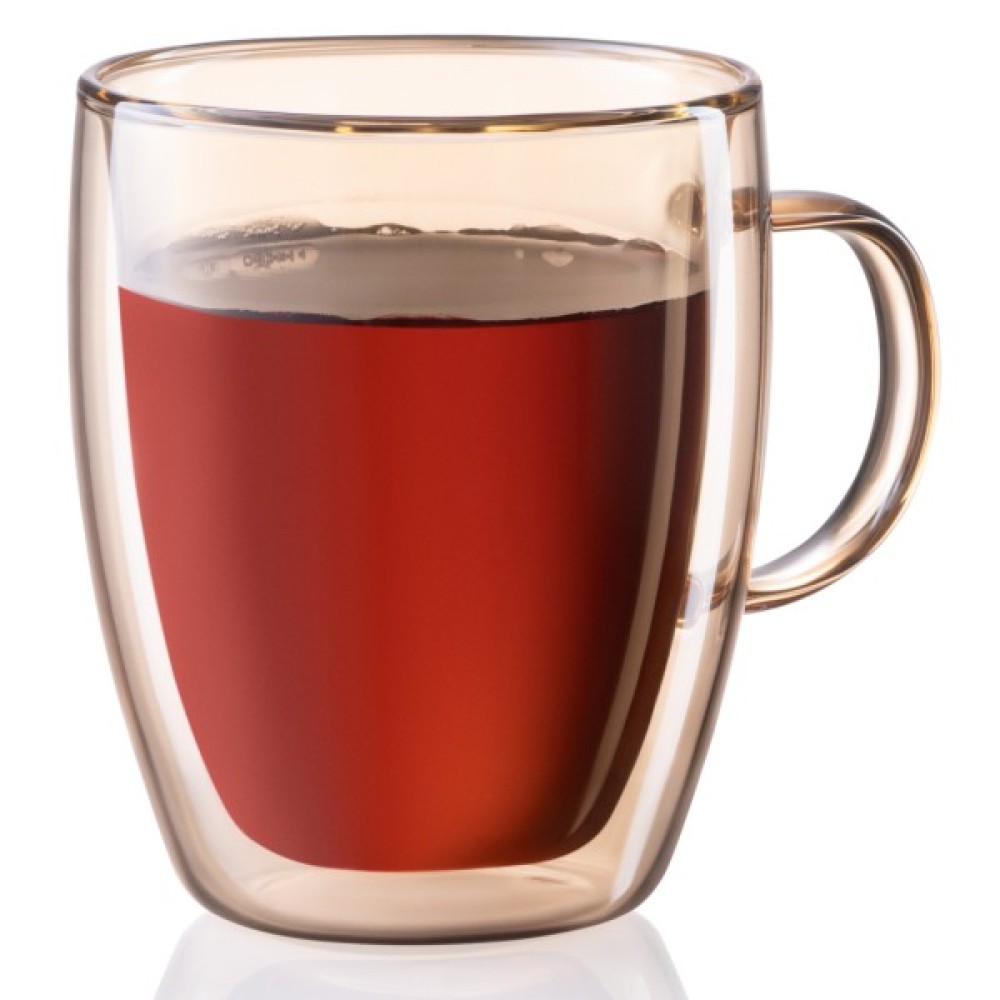Чашки з подвійними стінками – це насолода для поціновувачів естетики та практичності. Вони надзвичайно міцні та легкі, витримують температуру від -20 до +150 °C. Їх можна використовувати як піали або креманки для морозива. Завдяки особливій конструкції здається, що напої та десерти в них парять у повітрі. Вироби виготовлено з боросилікатного скла, стійкі до подряпин і не взаємодіють із напоями. Кожну чашку створюють вручну, тому вони є унікальними та мають характерний отвір на дні через спеціальний спосіб видування скла. Повітряний прошарок між двома стінками зберігає напої теплими, не нагріваючи зовнішньої поверхні. Чашки можна мити в посудомийній машині до 50 разів і використовувати в мікрохвильовці за температури до 100 °C. У комплектованні – дві чашки.