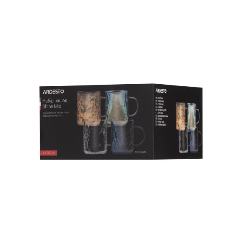 Набір, чашок, Ardesto, Shine, mix, 260, мл, 4, шт, прозорий, золотистий, сірий, перламутровий, AR2626GM