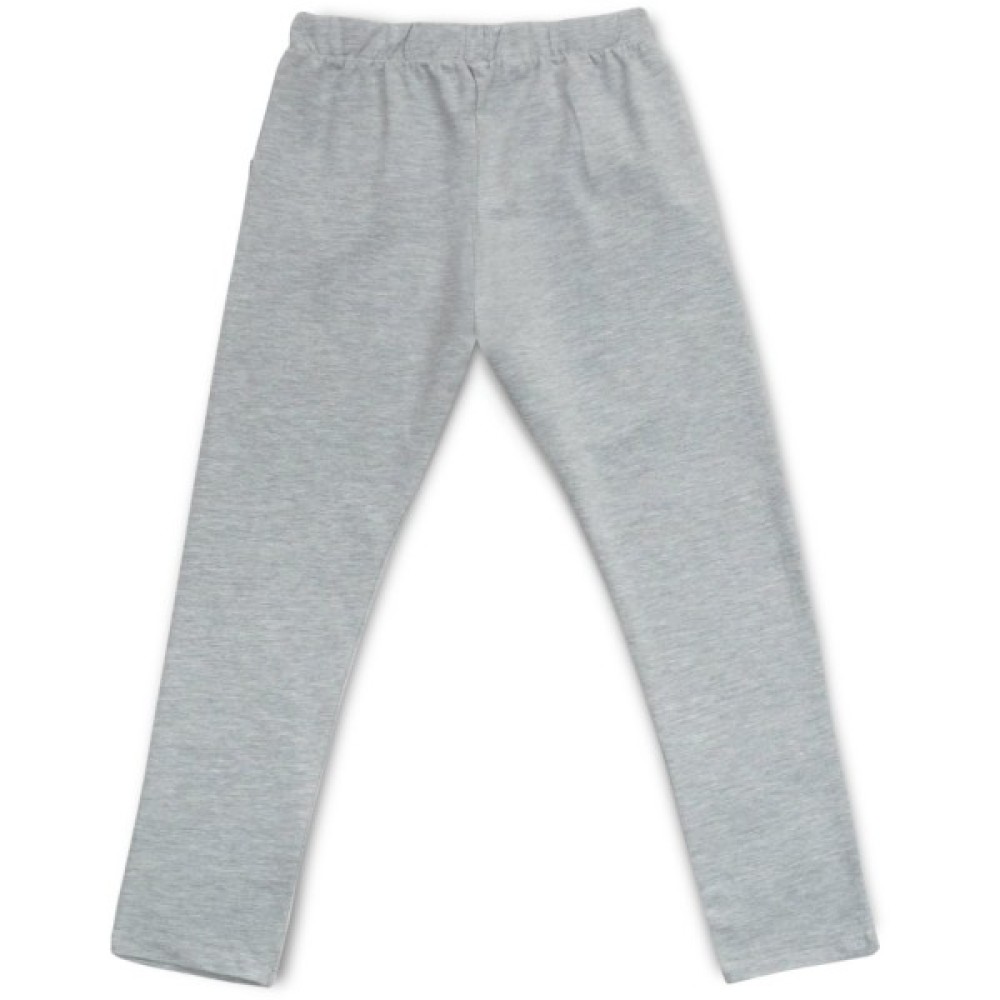 Лосини сірого меланжевого кольору, до низу завужені. Трикотажний пояс всередині на гумці, ширина пояса 3 см. Є неглибокі, врізні кишені.