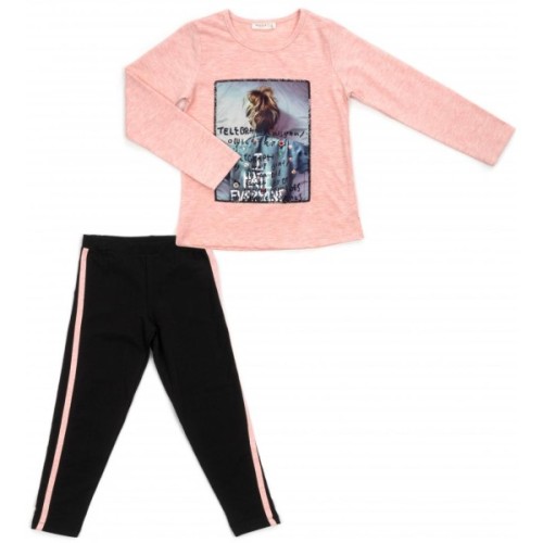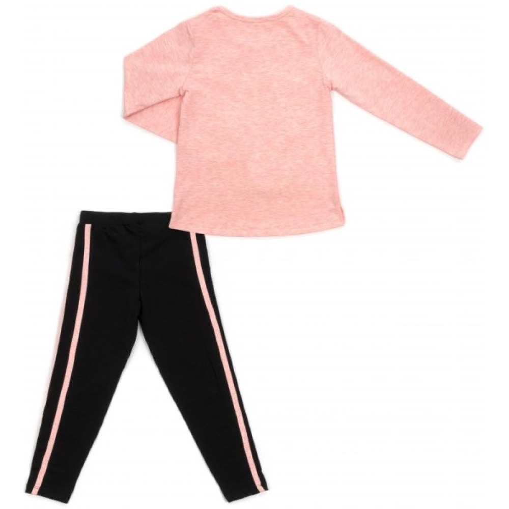 Стильний трикотажний комплект для вашої улюбленої модниці з якісного тонкого турецького трикотажу, дуже приємний на дотик: меланжевий персиковий лонгслів і чорні брючки-лосини.