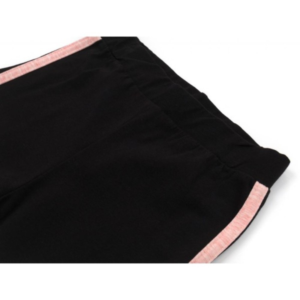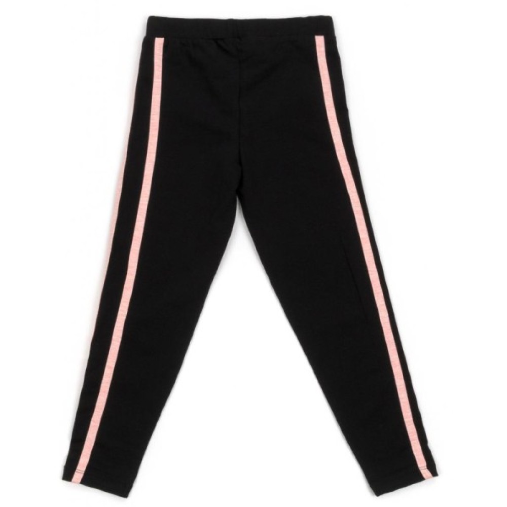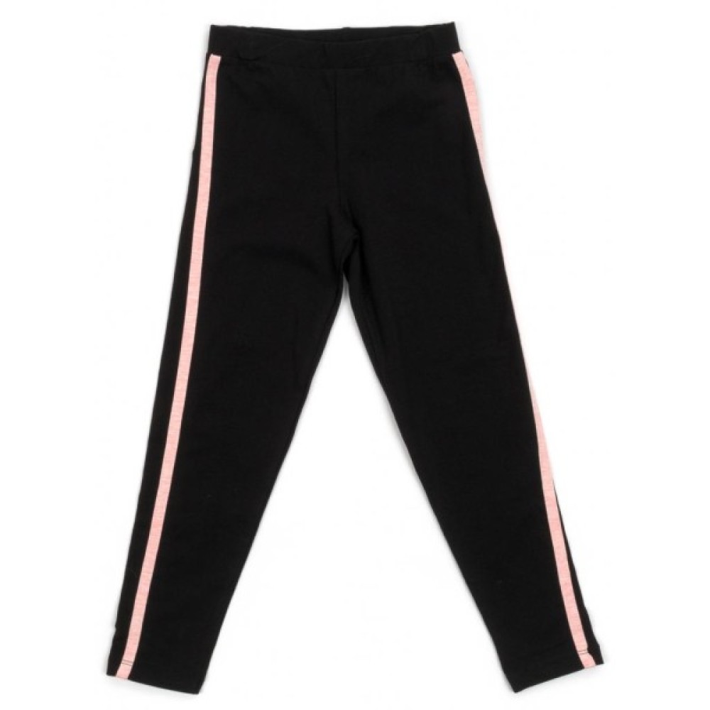 Зручні лосини з еластичним поясом на гумці, забезпечать оптимальну посадку по фігурі. З боків штанини прикрашені трикотажними лампасами персикового кольору.