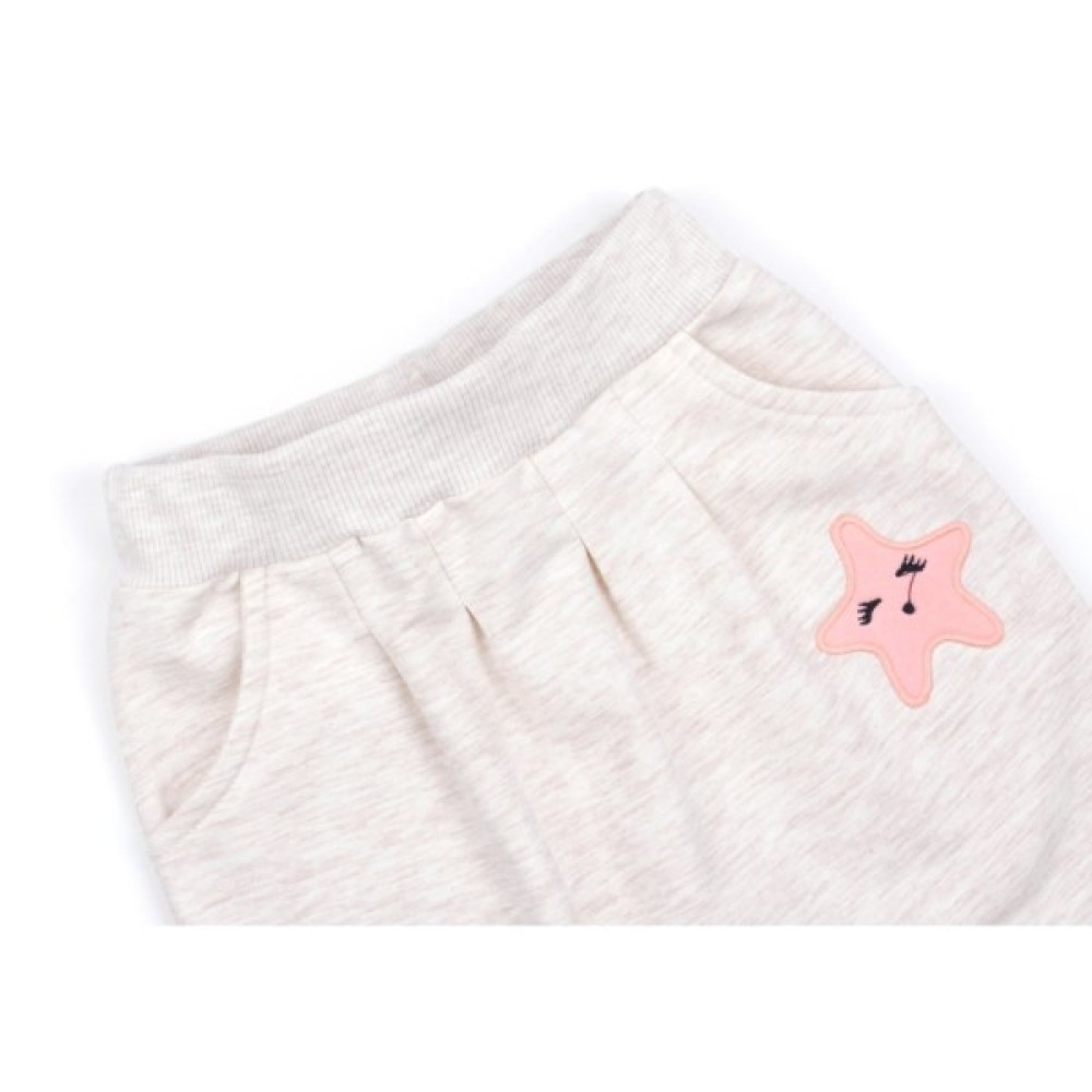 Модний комплект в стилі "спортивний шик" для дівчинки складається з світло-бежевого, меланжевого світшота, з кумедною аплікацією - зірочкою, і такими ж брючками.