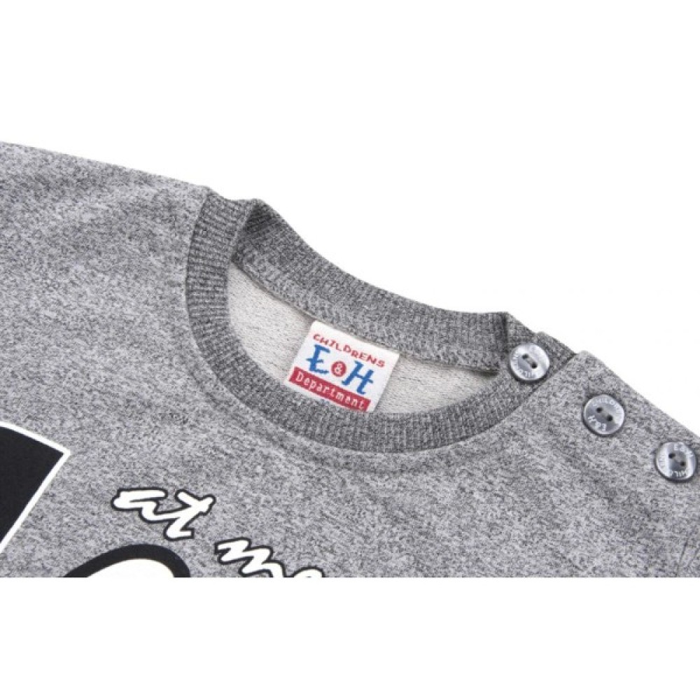 Світшот з довгим рукавом, що закінчується манжетом в «резинку», з привабливими кишенями-кенгуру. Класичний круглий виріз горловини також оформлений резинкою. На лівому плечі застібка на три гудзики, яка полегшить процес одягання. Кумедний принт на грудях у вигляді контрастного напису "Look at me", який привертає увагу цікавого вгляду буквами, що нагадують мультяшні очі.