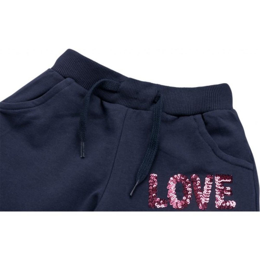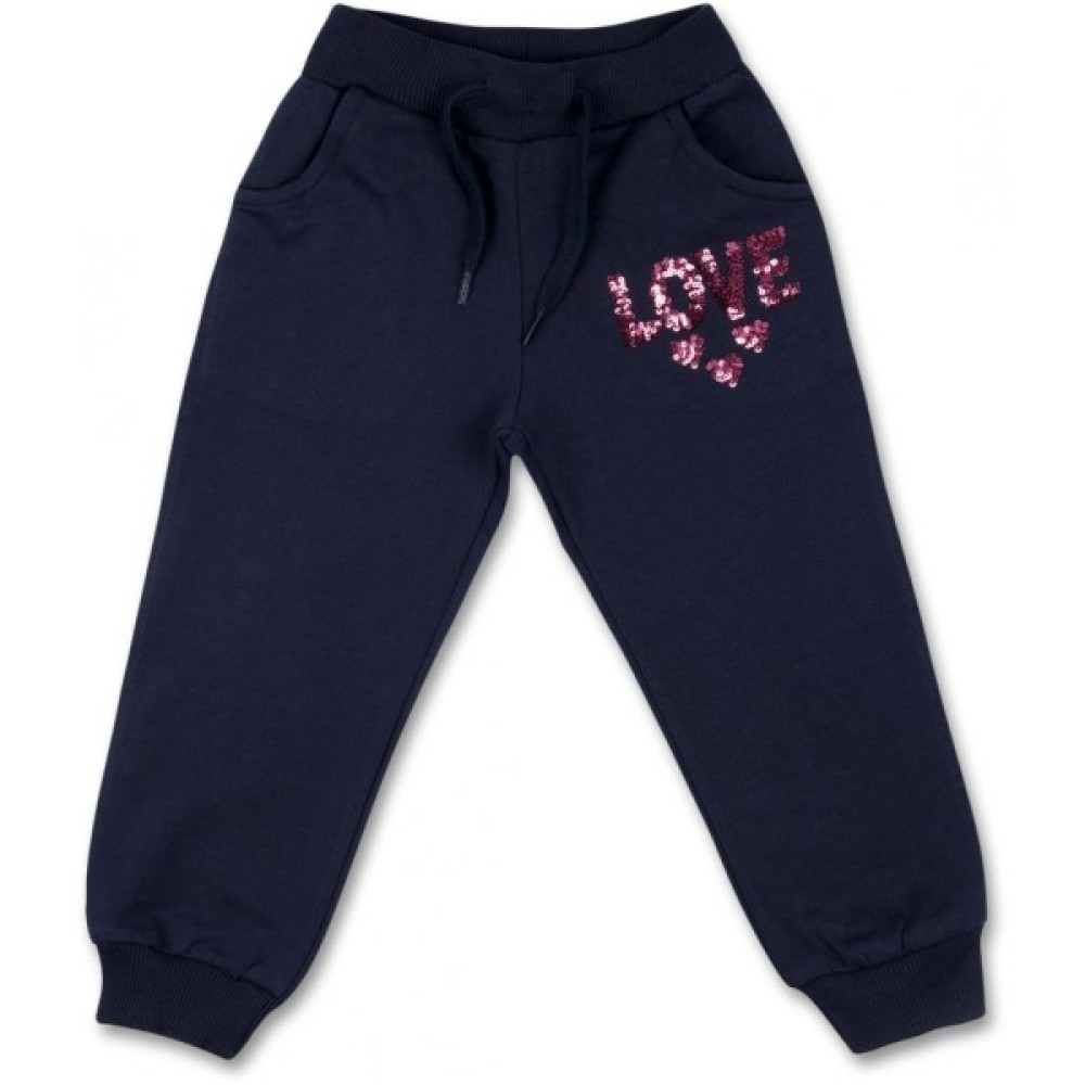 Зручні брюки спортивного стилю з щільного, приємного трикотажу з двома прорізними кишенями. Еластичні пояс і манжети в «резинку», забезпечать оптимальну посадку по фігурі. А не менш шикарна об'ємна вишивка, блискучими пайєтками, слова «LOVE» і три дивовижних сердечка не залишать байдужою Вашу маленьку модницю.