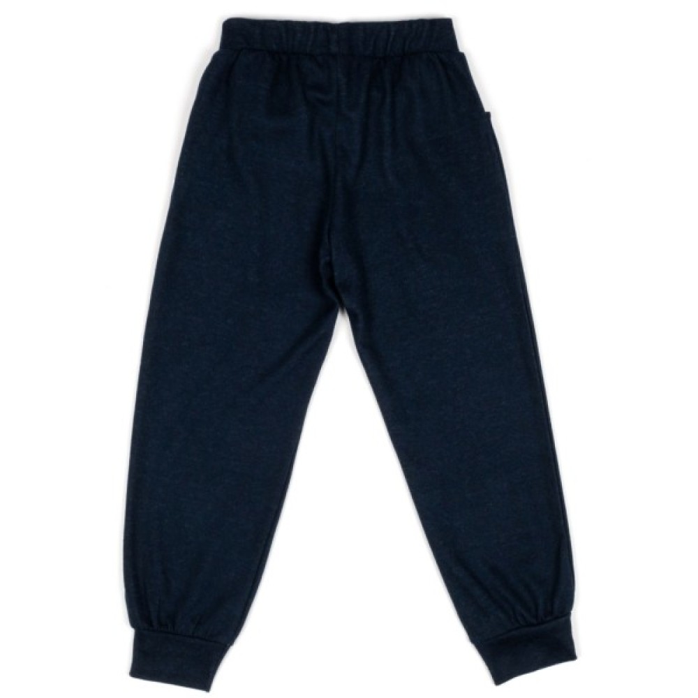 • Ефектний трикотажний набір темно-синього кольору для дівчинки, прикрашений дуже акуратним, стильним кольоровим принтовим малюнком.