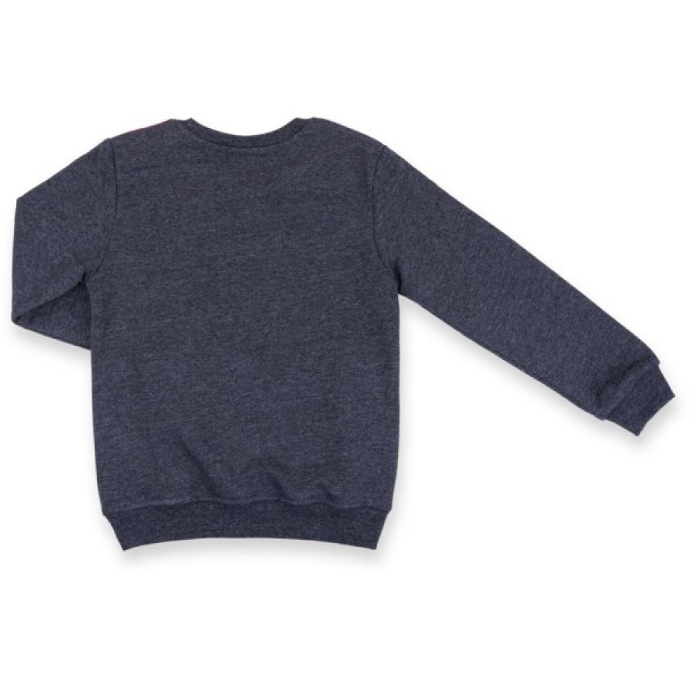 Чудовий двоколірний, трикотажний комплект в спортивному стилі, відмінної якості: меланжевий світшот темного, сіро-синього кольору і темно-сині штани.