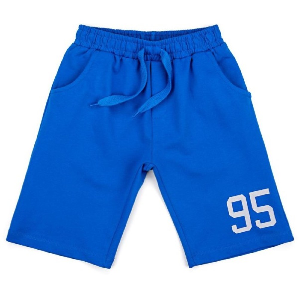 Шорти-бермуди прямі, з гарною посадкою, еластичним поясом на резинці і двома прорізними кишенями. Прикрашені принтом «95», який поєднується з принтом на футболці, що об'єднує ці речі в стильний і модний комплект.