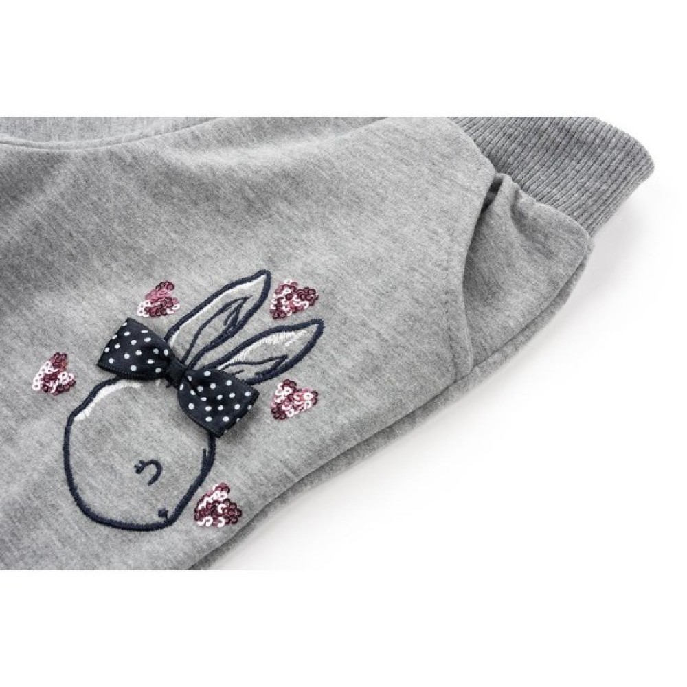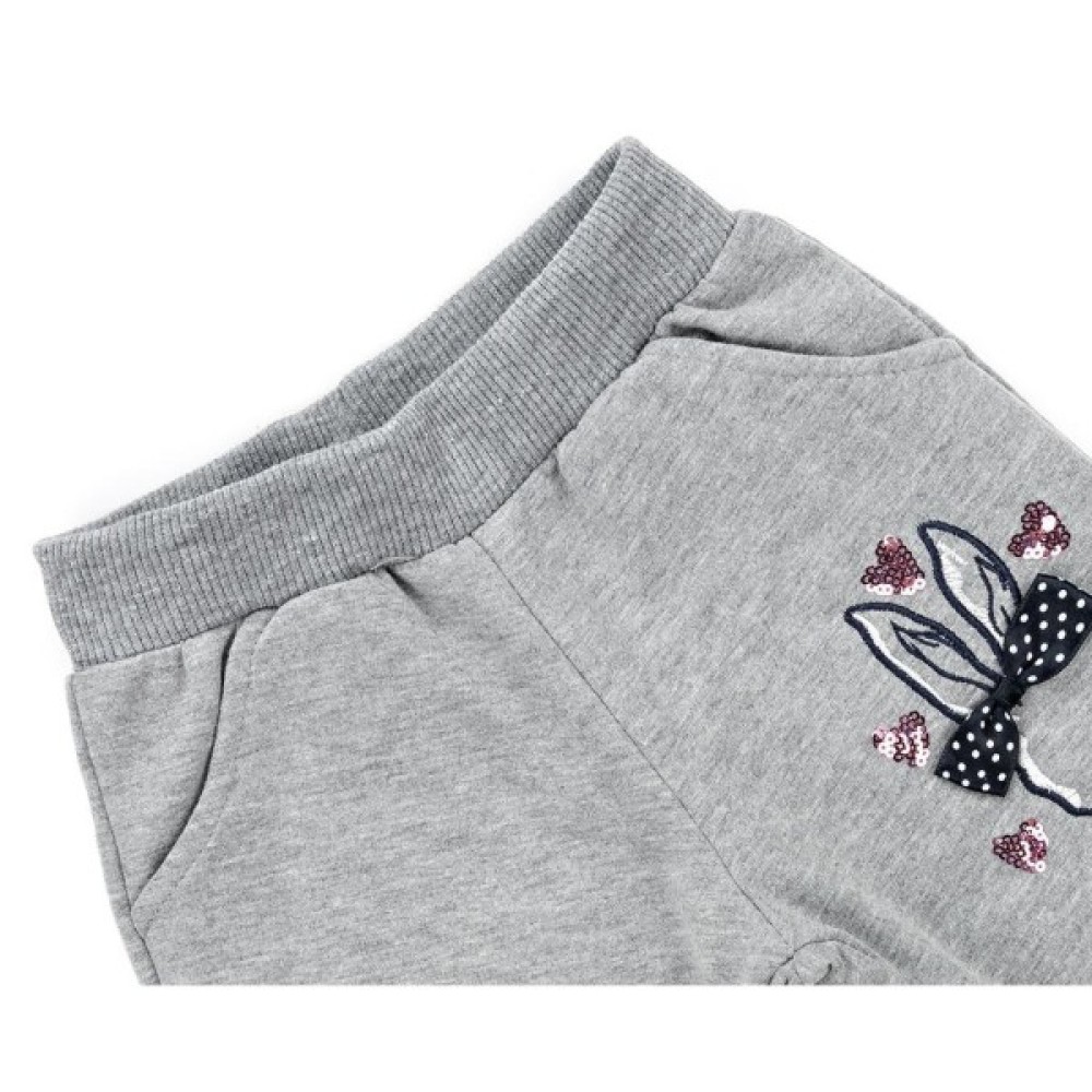 Зручні штанці з двома прорізними кишенями і милим кроликом на лівій холоші доповнюють цей милий комплект. Еластичний пояс і манжети в «гумку» забезпечать оптимальну посадку по фігурі.