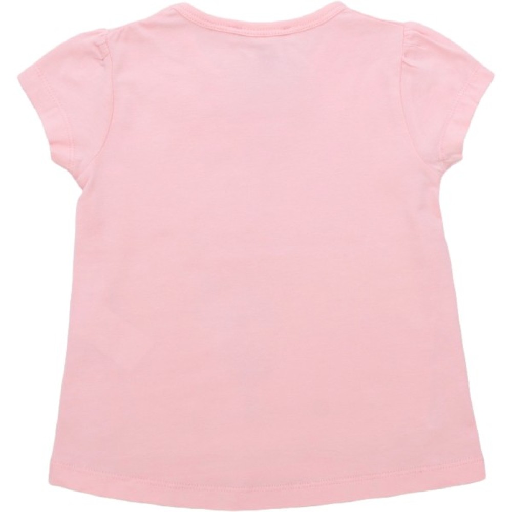 Футболочка вільна, трохи розширеного А-силуету, з короткими рукавчиками. Горловина оброблена м'якою трикотажною бейкою. Перед футболки прикрашений красивим, яскравим, об'ємним кольоровим принтовим малюнком.