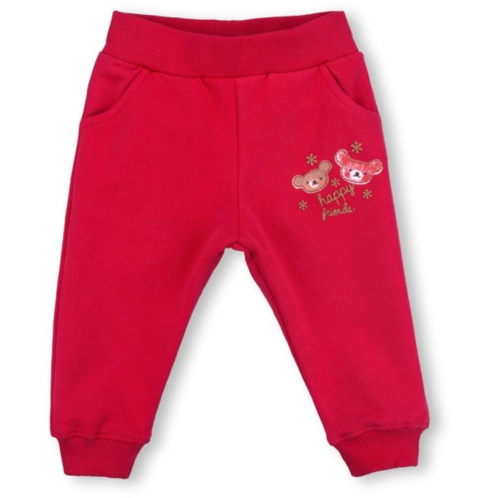 Зручні штани на манжетах, з двома прорізними кишенями, так само прикрашені у верхній частині милим принтом, аналогічним принтам на світшоті. Широкий еластичний пояс і манжети, в подвійну трикотажну «резинку», забезпечать оптимальну посадку по фігурі. Пояс додатково посилений широкою вставленою «резинкою».