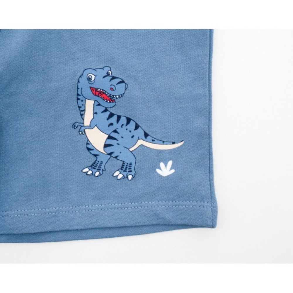 - Футболочка прямого покрою, з короткими рукавами та круглою горловиною, гладенька та приємна на дотик. Прикрашена спереду яскравим кольоровим якісним принтовим малюнком із веселими динозавриками та автомобілями. Горловина оброблена м'якою тонкою подвійною трикотажною гумкою. Для невеликих розмірів у плечовому шві передбачена застібка на фірмові перламутрові ґудзики.