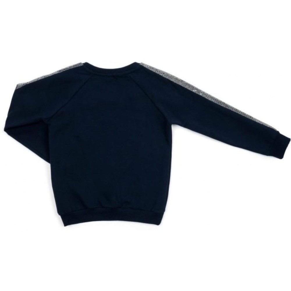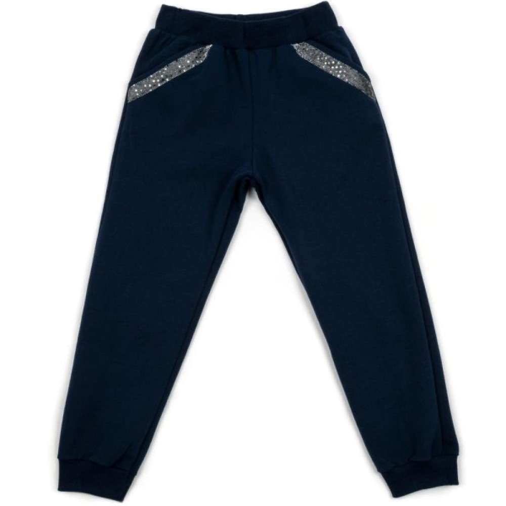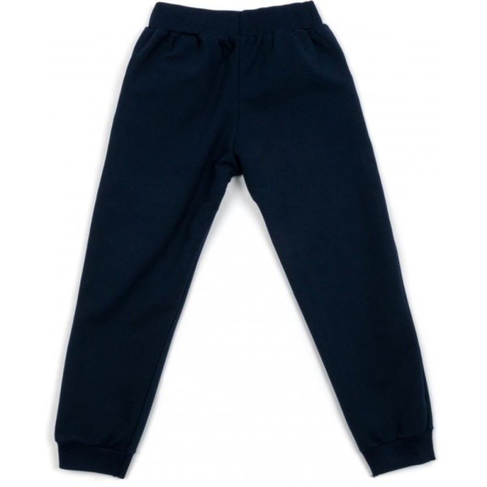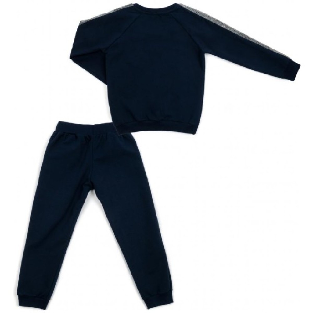 Затишний трикотажний костюм для дівчинки темно-синього кольору в стилі «спортивний шик»: вільного крою світшот і штани на манжетах.