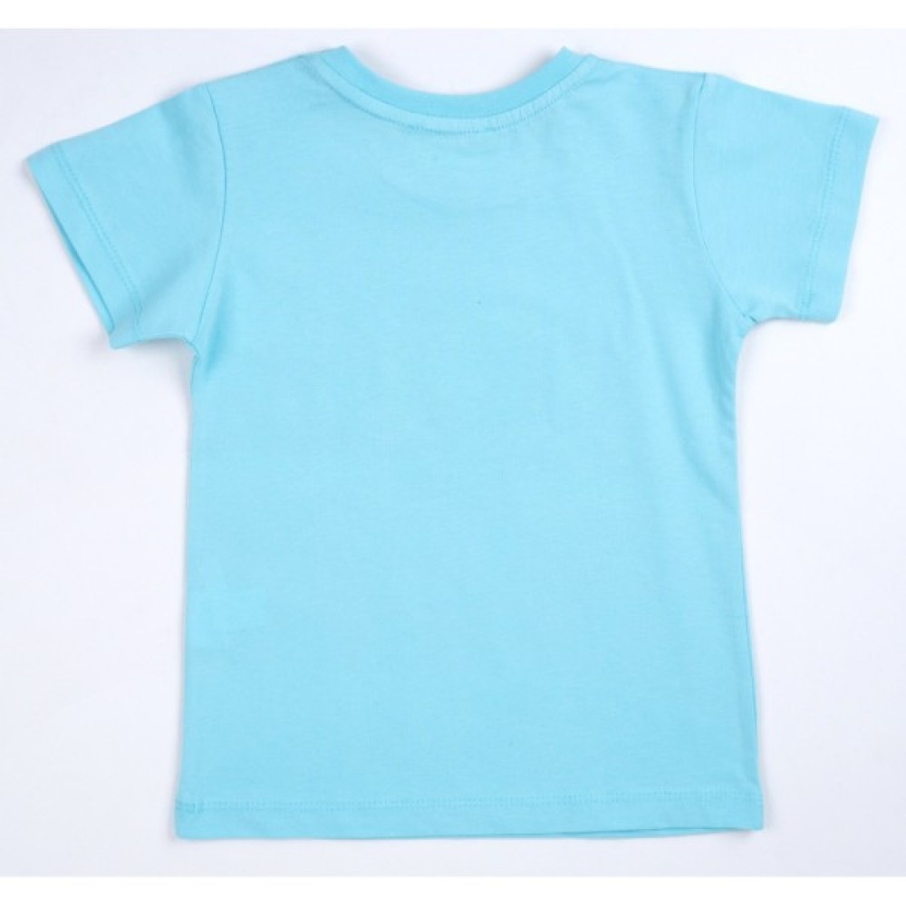 - Футболка прямого покрою, з короткими рукавами і круглою горловиною. Прикрашена спереду об'ємним кольоровим принтовим малюнком. Горловина оброблена м'якою, тоненькою подвійною трикотажною гумкою. На лівому плечі виконана застібка на фірмові, перламутрові ґудзики, яка полегшить процес одягання.