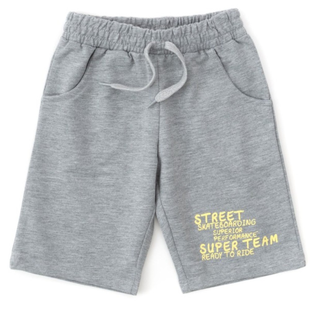 • Шорти прямі, середньої довжини, зі зручною посадкою, еластичним поясом на гумці і двома прорізними кишенями. Прикрашені принтовими написами жовтого кольору.