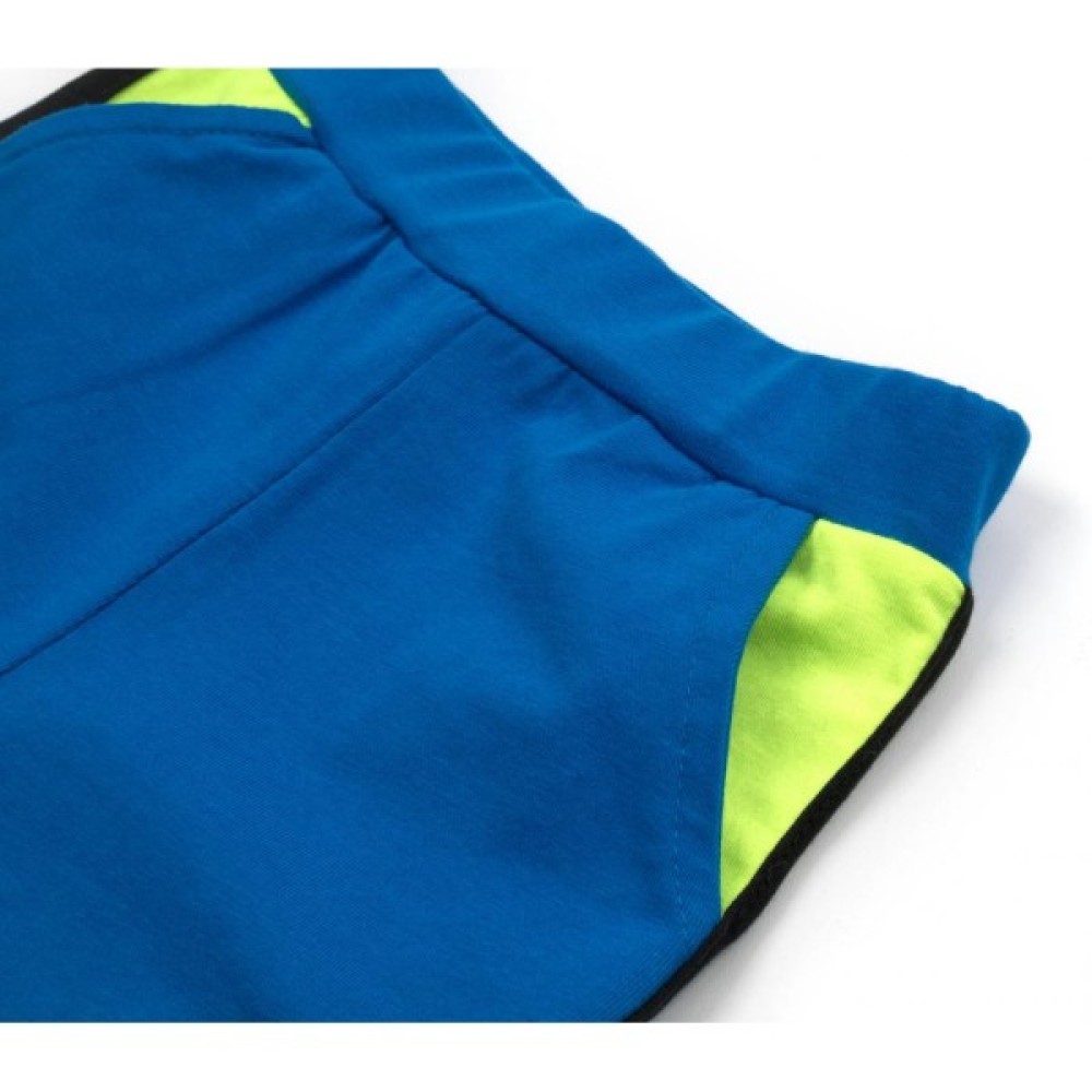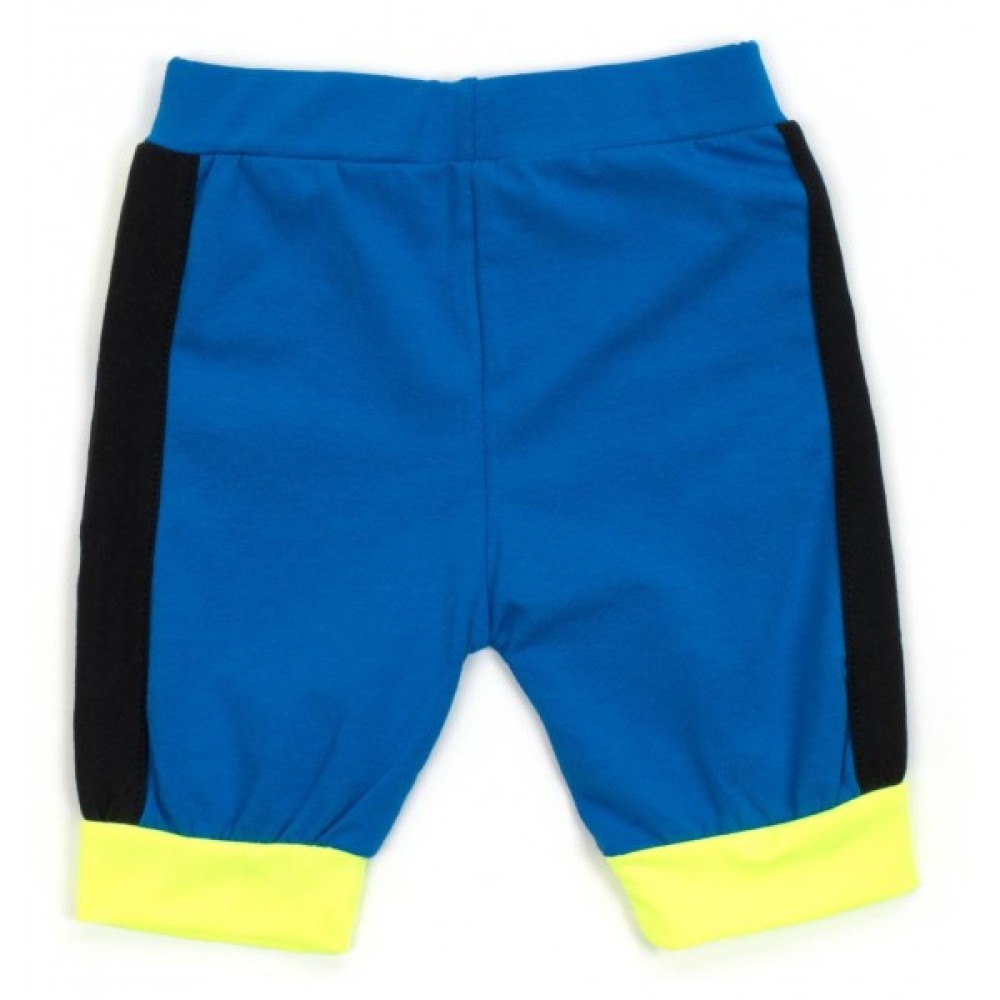Бриджі прямі, дуже модні, на манжетах, з двома прорізними кишенями. Завдовжки трохи нижче колін. У поясі під гумку, Пояс і манжети - трикотажні. Виконані в шикарному поєднанні чорного, неоново-салатового і кольору електрик.