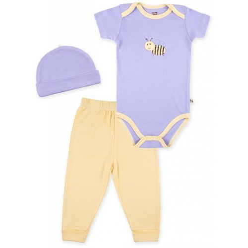 Набір дитячого одягу Luvable Friends. В комплект входять: боді з коротким рукавом, штанці і шапочка. Кнопкові застібки на плечі і в нижній частині боді призначені для зручності переодягання і зміни підгузника. Боді прикрашають милі принти і аплікації. Штанці на м'якій гумці, з передньою кишенею.М'який і ніжний трикотаж після прання не втрачає колір і форму. Зручний і практичний комплект, ідеальний для щоденної шкарпетки.