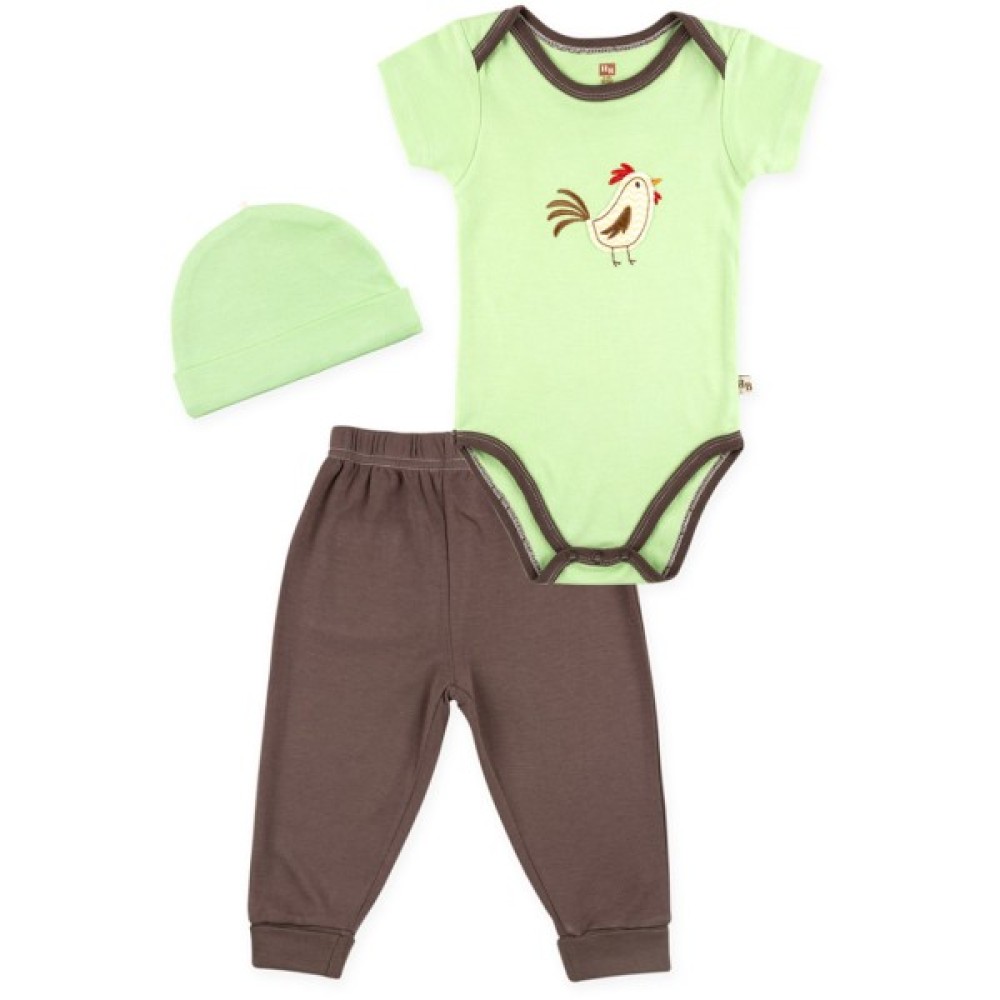 Набір дитячого одягу Luvable Friends. В комплект входять: боді з коротким рукавом, штанці і шапочка. Кнопкові застібки на плечі і в нижній частині боді призначені для зручності переодягання і зміни підгузника. Боді прикрашають милі принти і аплікації. Штанці на м'якій гумці, з передньою кишенею.М'який і ніжний трикотаж після прання не втрачає колір і форму. Зручний і практичний комплект, ідеальний для щоденної шкарпетки.